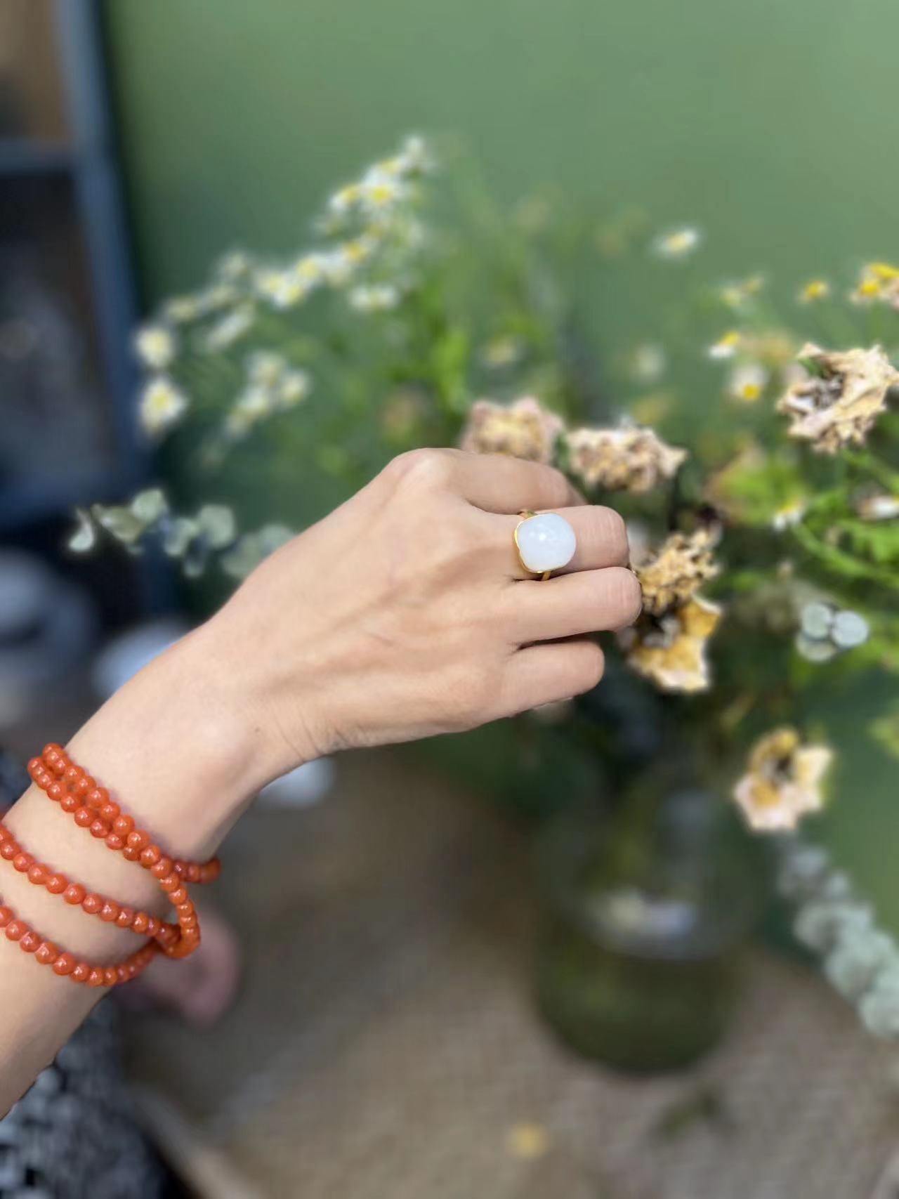 【蛋白·和田玉戒指】