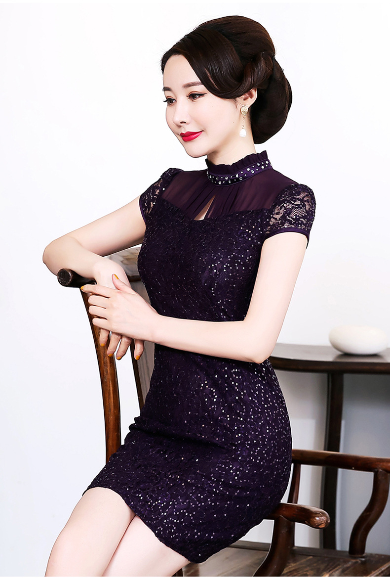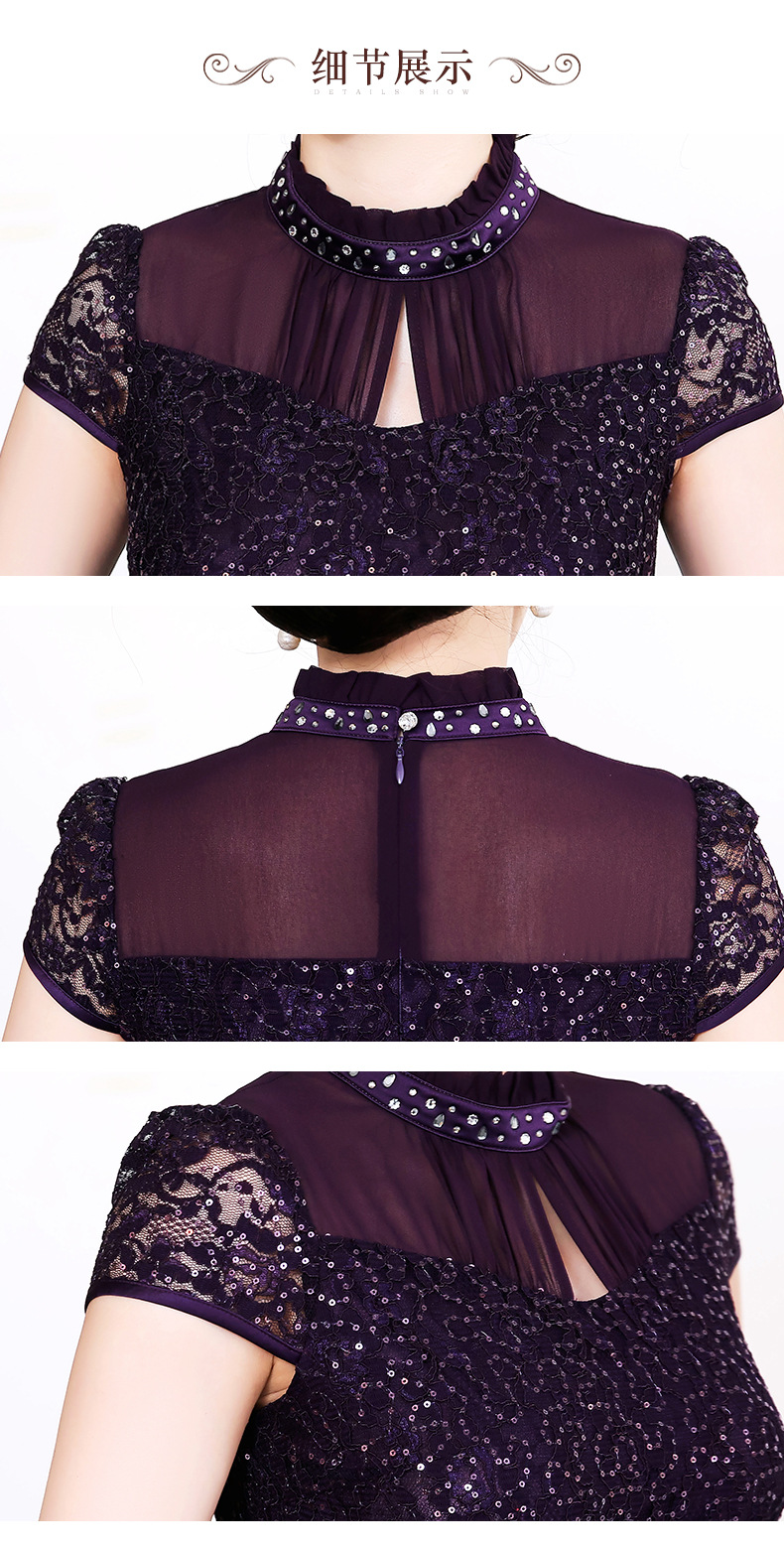 MY-92326新款修身显瘦钉珠妈妈装旗袍连衣裙