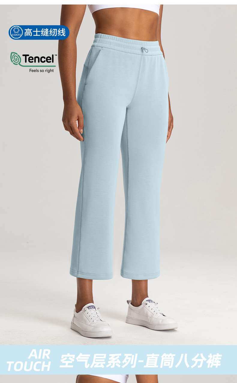 跃牌【倚窗听雨】Athena 砂洗空气层瑜伽裤女莫代尔宽松运动健身直筒八分裤CK104