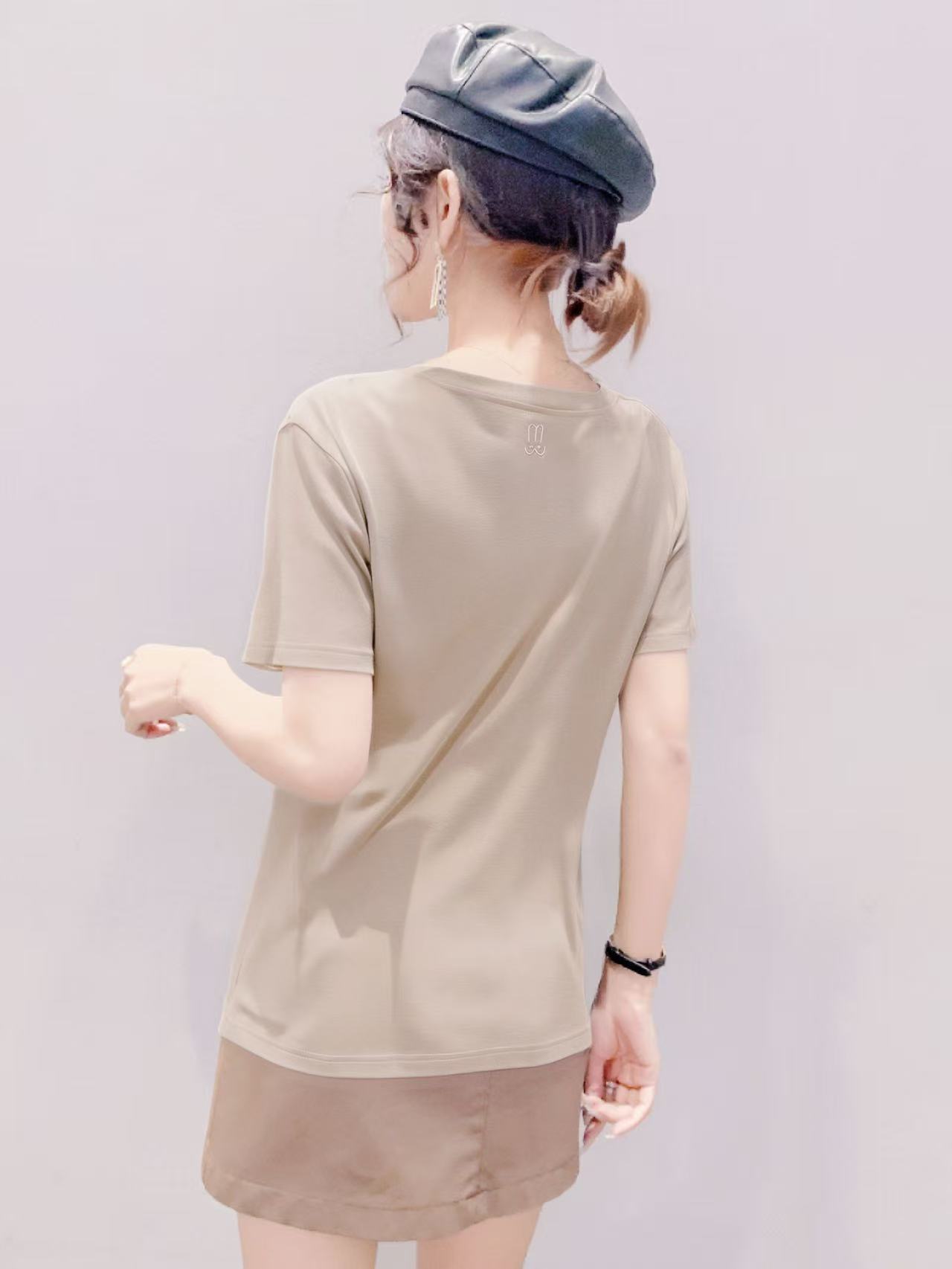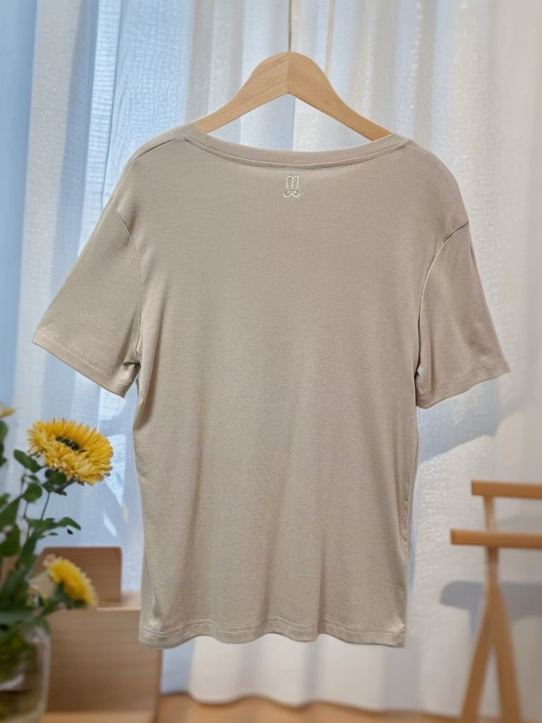 清仓价2025~1015兔子刺绣卡其薄款短袖T恤-喜出