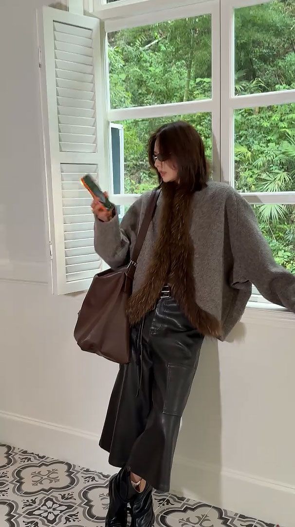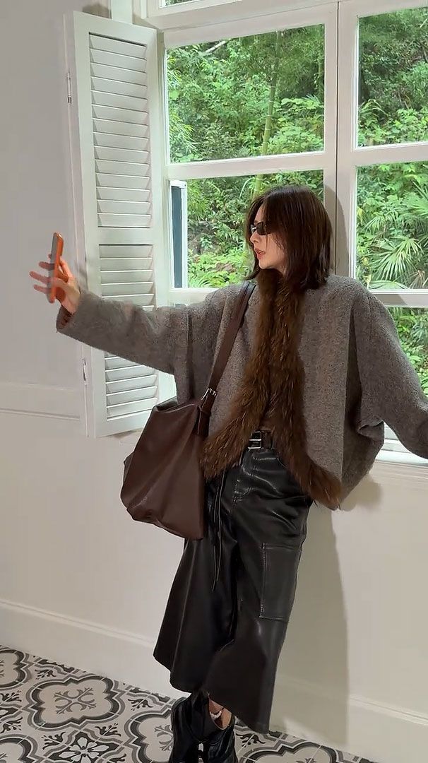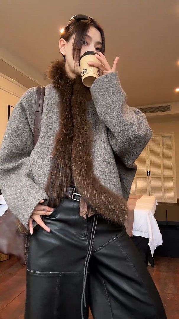 雀说韩系大码灰色短款毛呢外套女冬季毛领蝙蝠袖加厚呢子大衣ALW