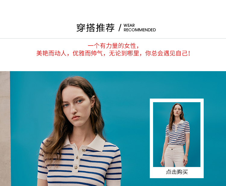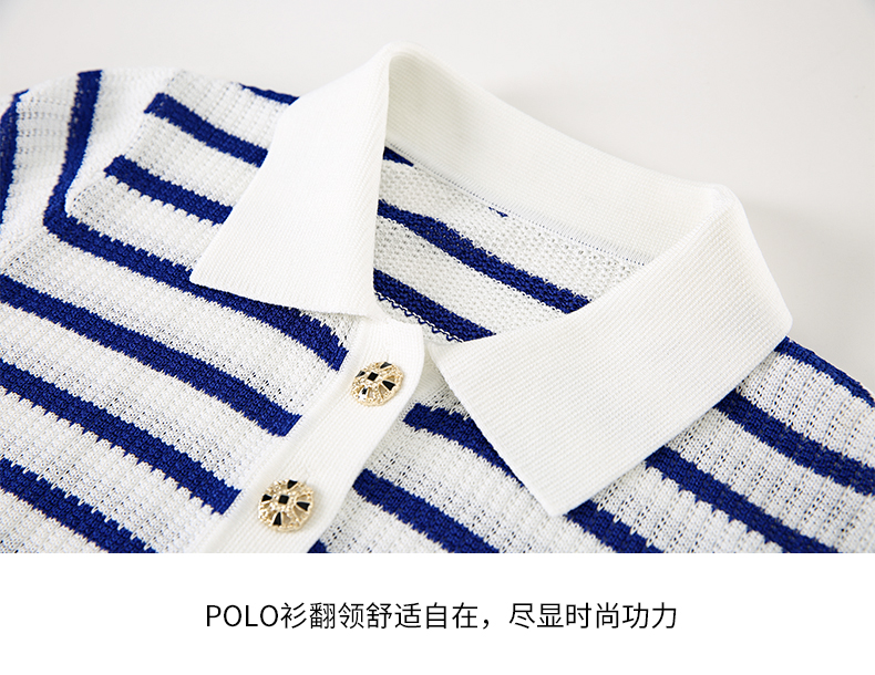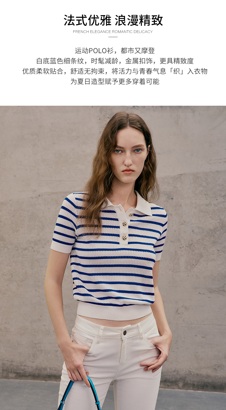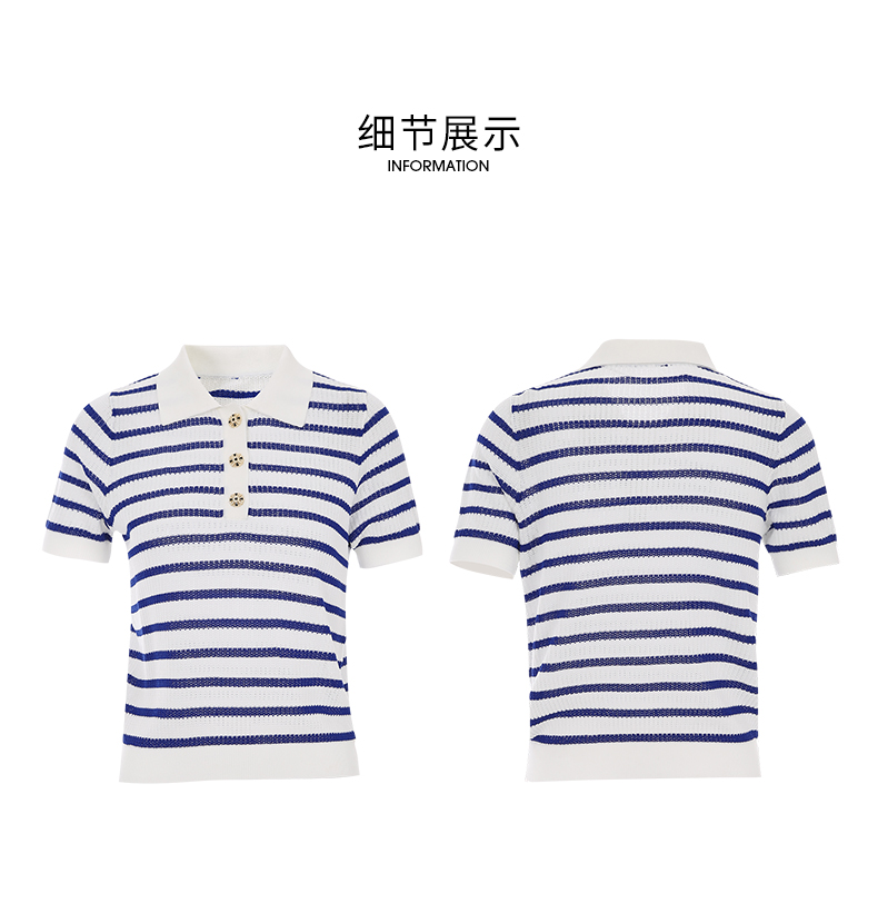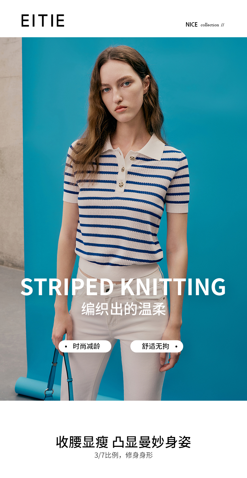EITIE爱特爱夏季新款条纹显瘦百搭时尚针织衫7401103