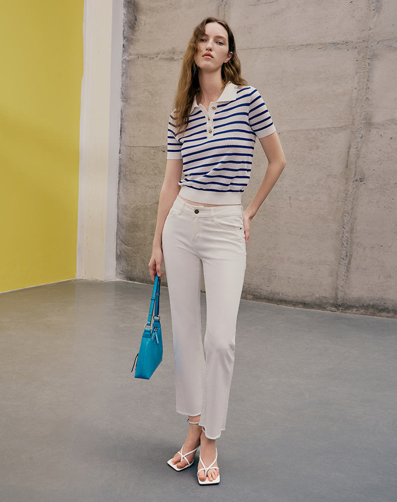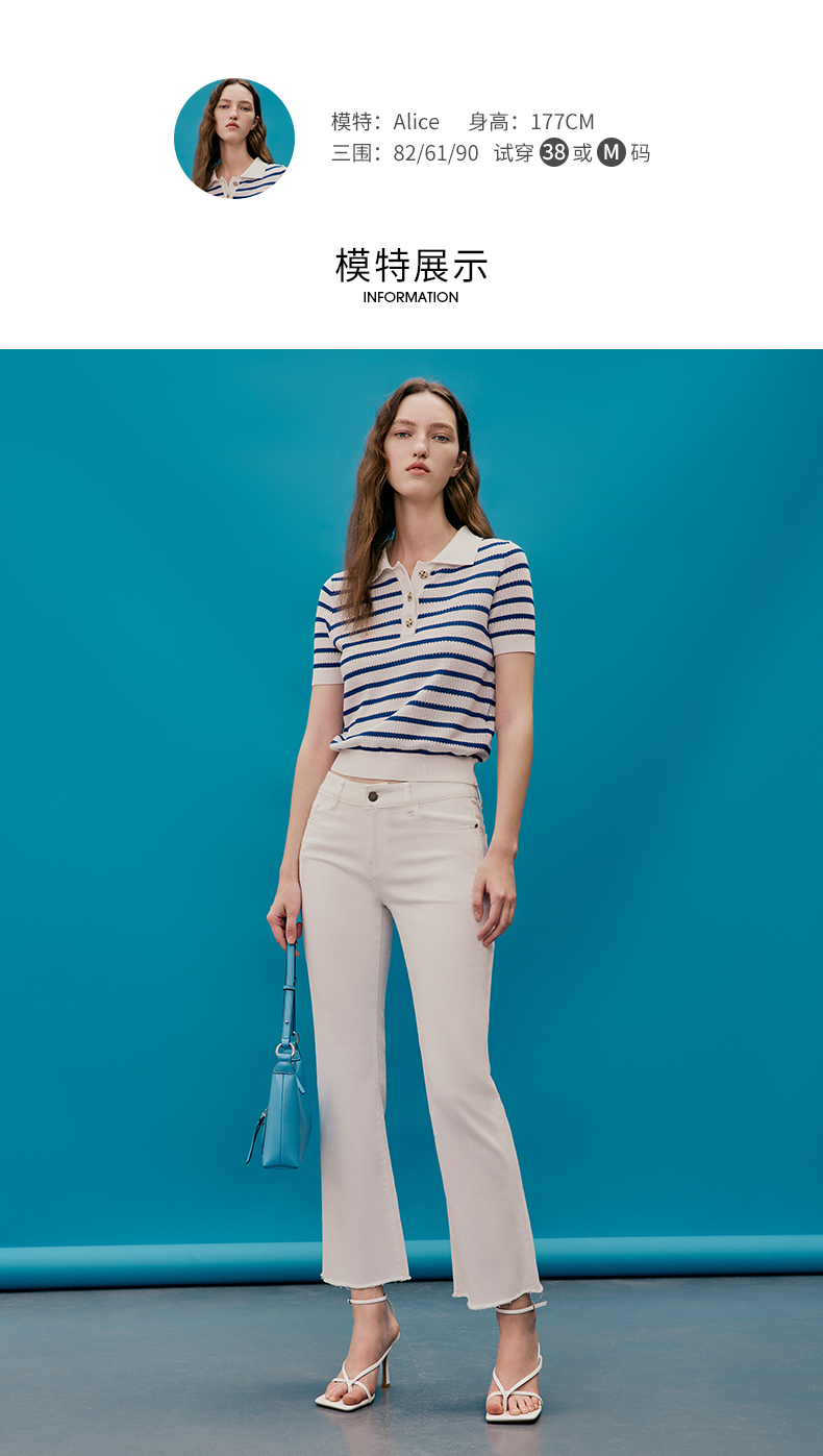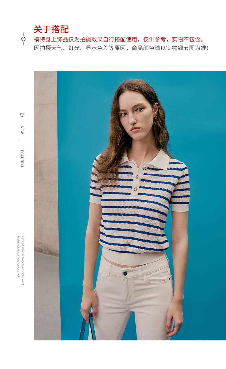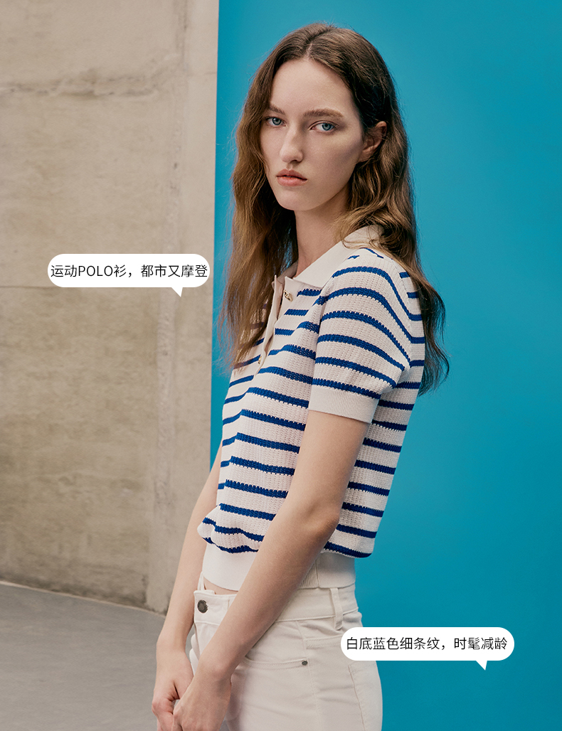 EITIE爱特爱夏季新款条纹显瘦百搭时尚针织衫7401103