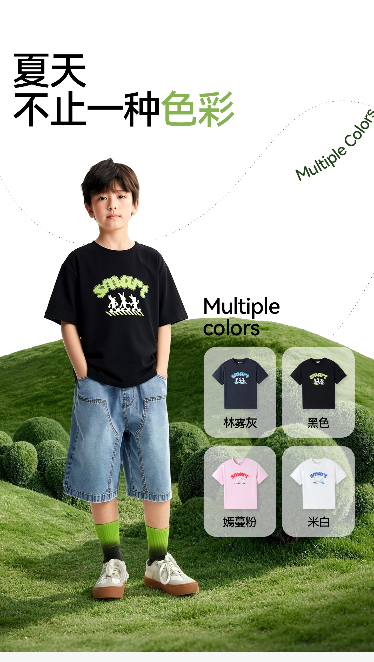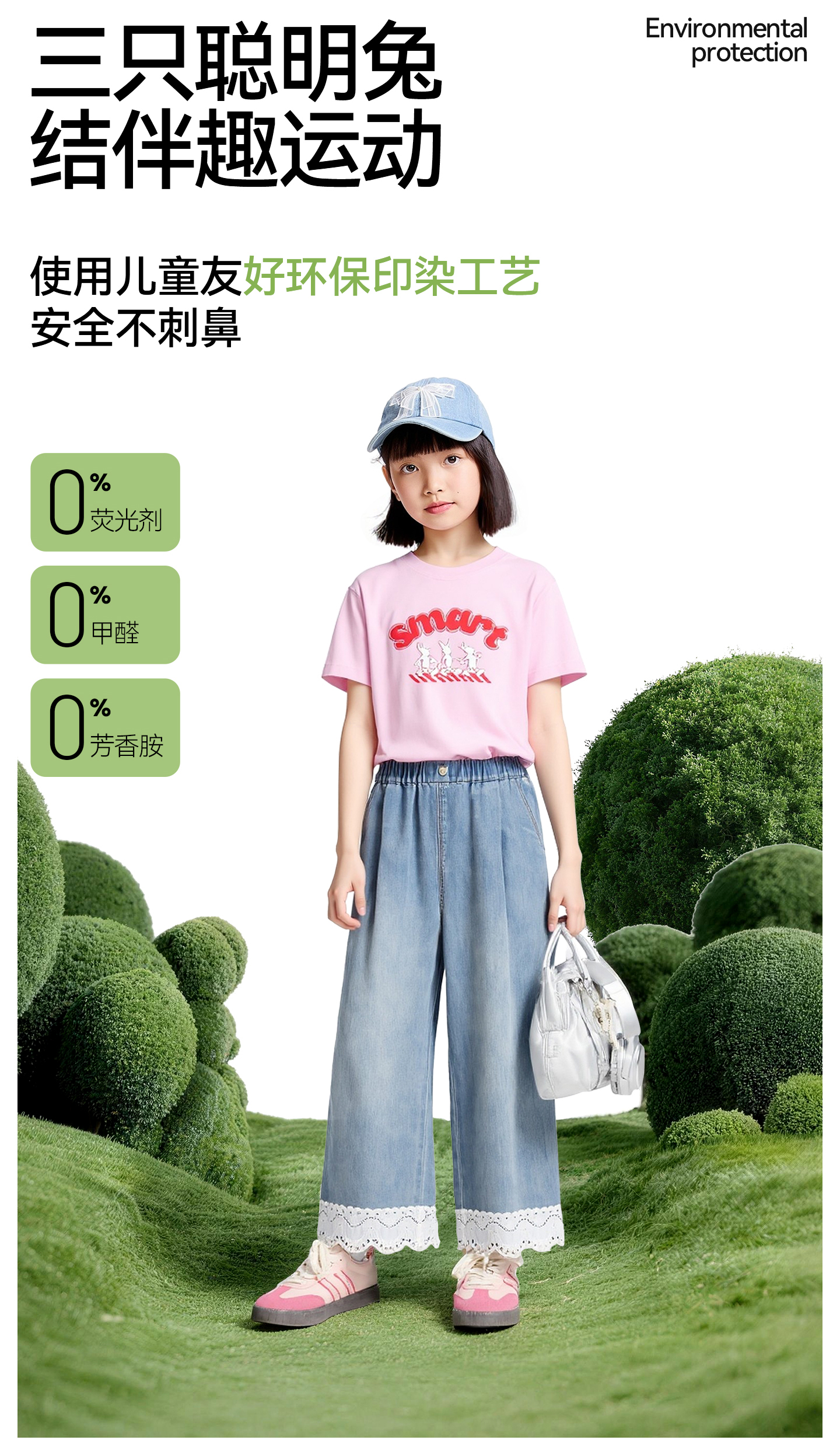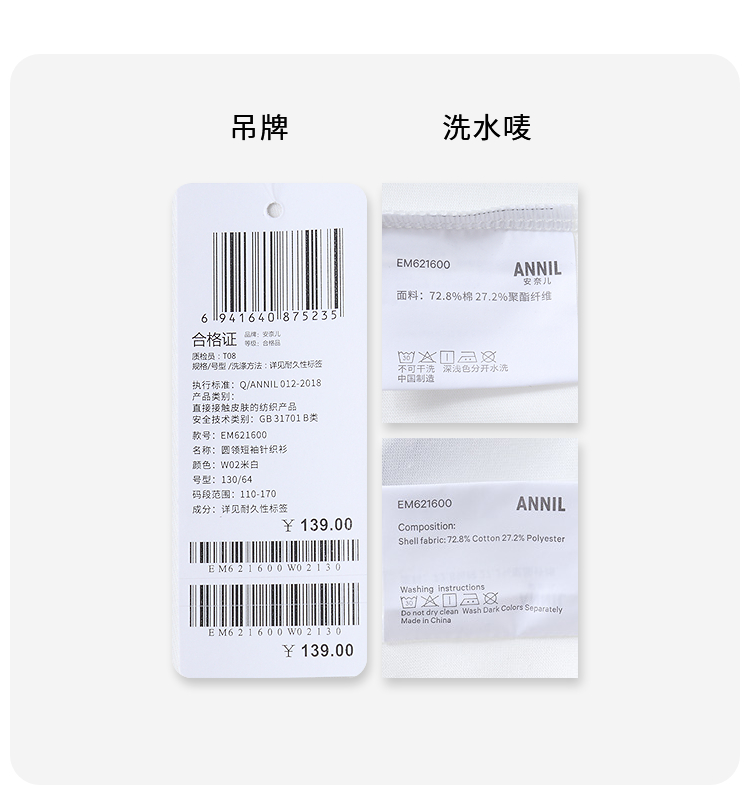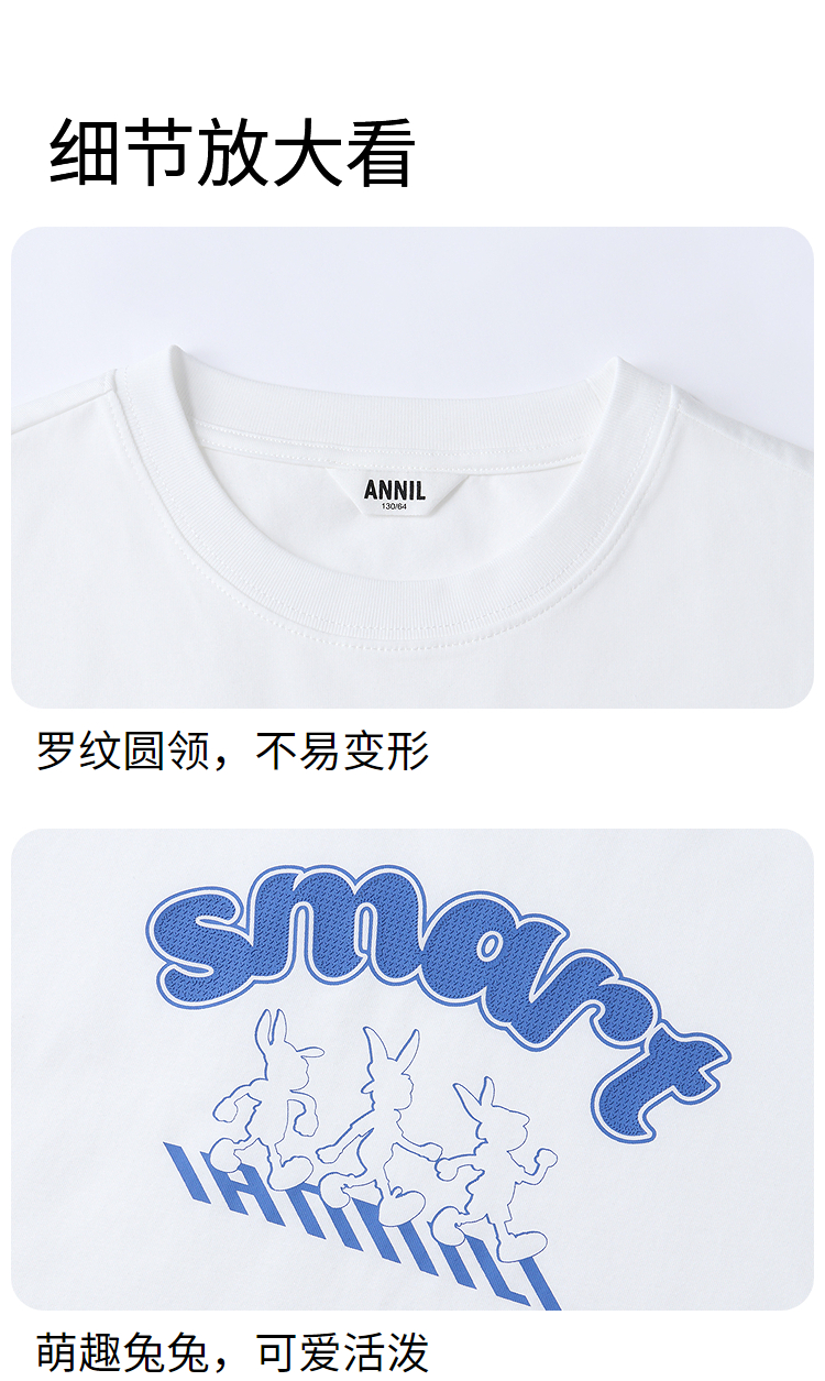 男女童圆领短袖针织衫夏季新款安奈儿童装EM621600