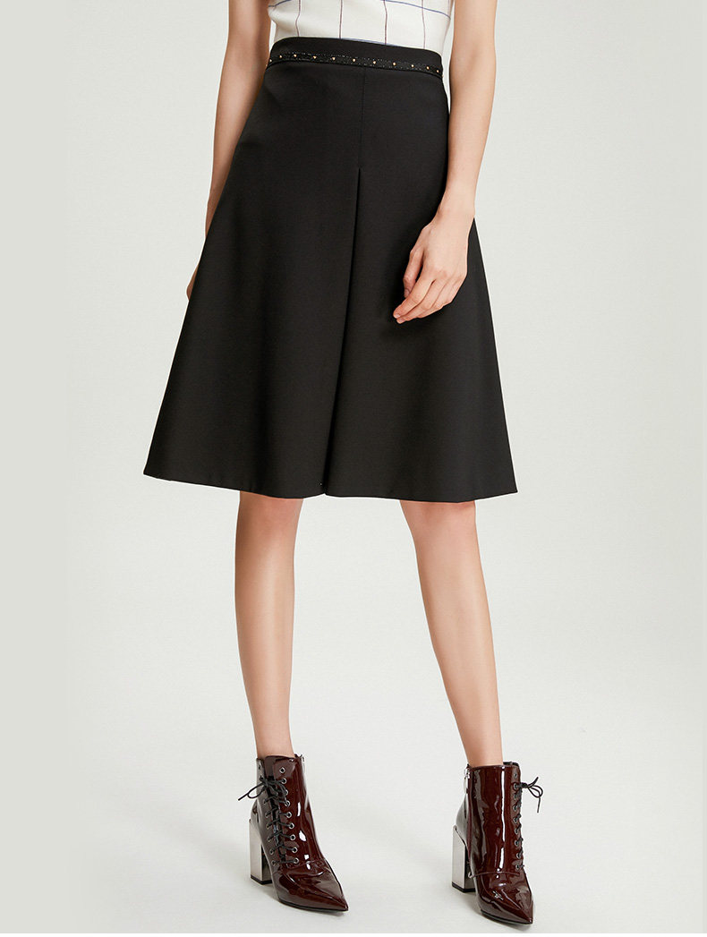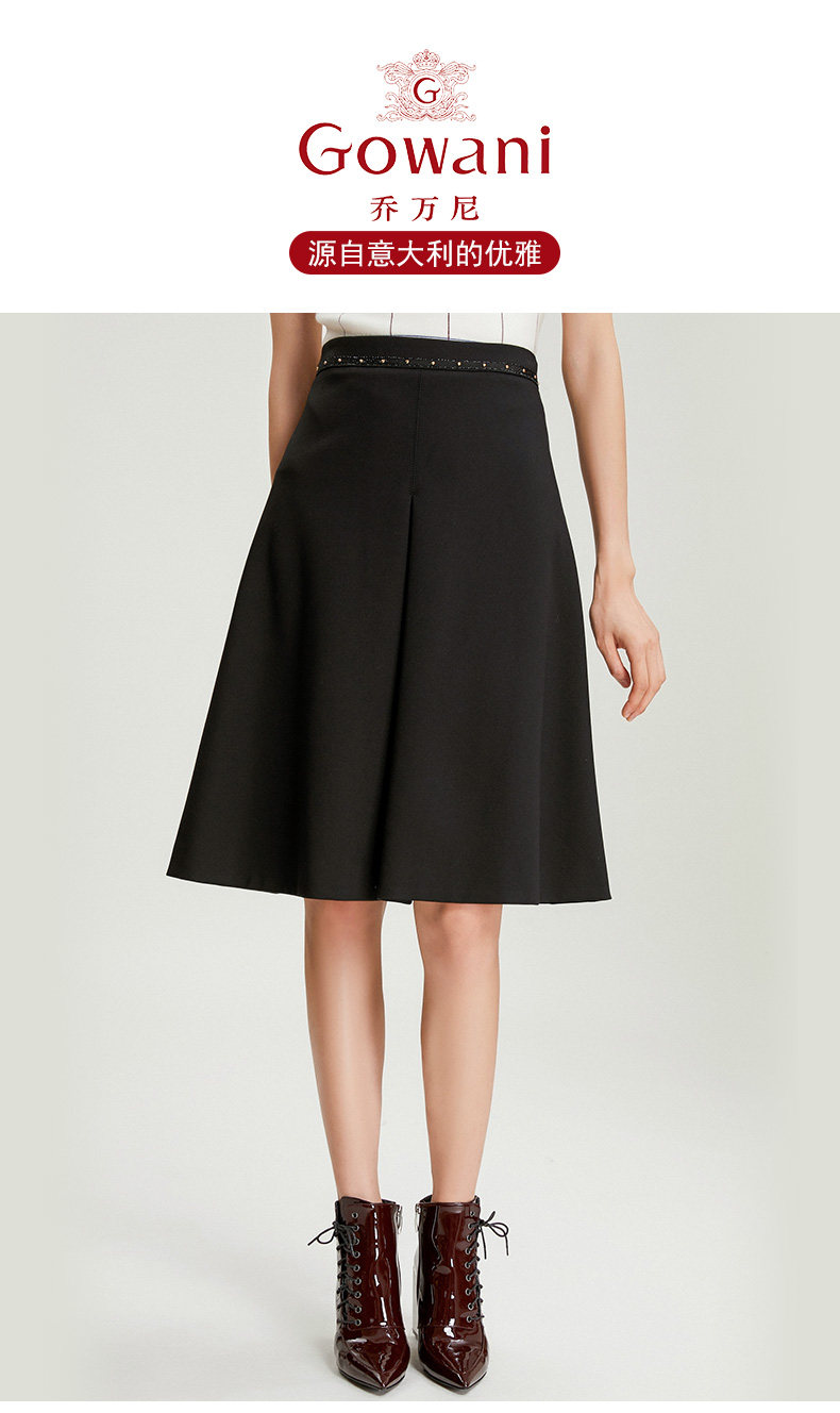 乔万尼冬裙女a字半身裙黑色显瘦气质中长裙百搭休闲裙EN4D851