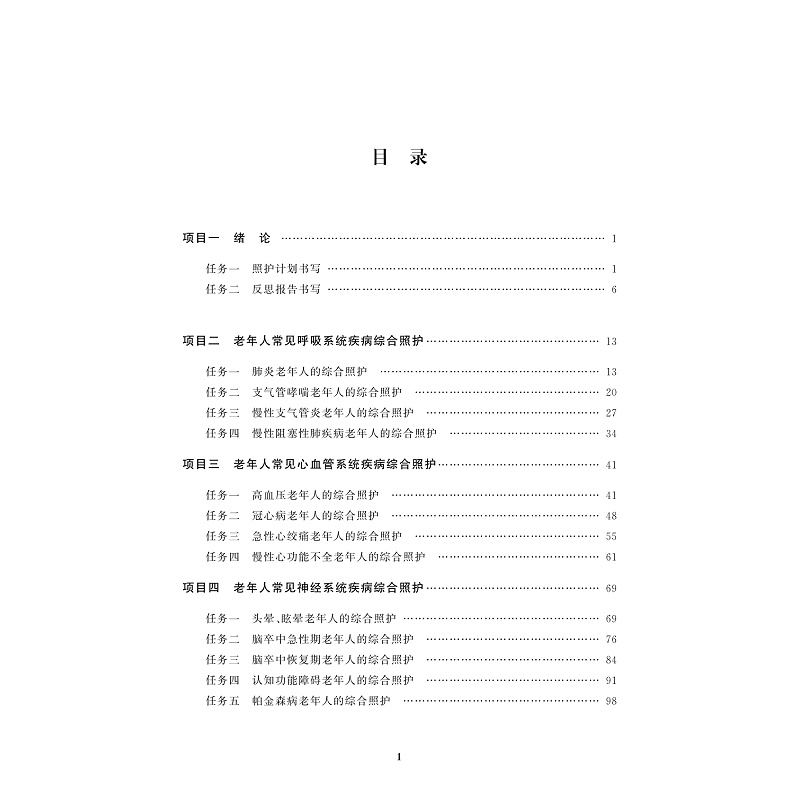 根据老年人常见疾病照护的需求,将内容分为老年人常见呼吸系统疾病整合照护、常见心血管系统疾病整合照护;常见神经系统疾病整合照护,常见骨骼肌肉系统疾病整合照护及其他疾病整合照护五个项目个模块。每个项目从医院、长期照护中心、日间照护中心及居家等场景挑取并设计典型案例, 通过导入情景案例,引出案例的照护任务,在分析案例的基础上制定照护计划,实施对老人的符合实际情景的整合照护,展示实际照护的步骤与流程,分析实际照护中存在问题与注意事项。学生可借鉴本教材提供的实际照护步骤与流程图,明确注意事项,进行真实场景下的整合照护。可作为老年护理专业、老年保健与管理等老年照护相关专业提供综合性训练的指导教材。