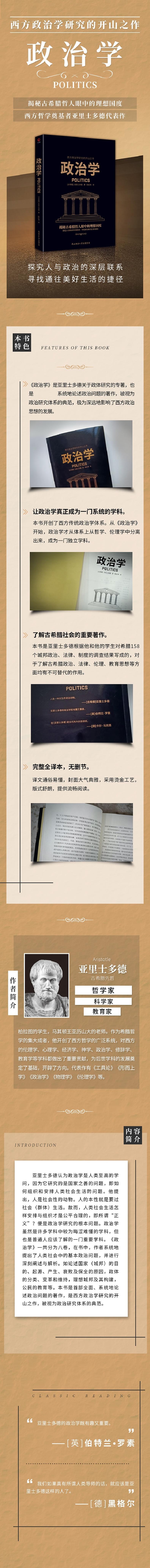 4.《政治学》完整全译本,无删节。译文通俗易懂、语言优美,封面大气典雅,采用烫金工艺,版式舒朗,提供流畅阅读。