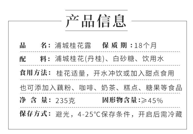 浦城桂花露 花香浓郁 甜而不腻 入茶佐餐甜品搭配 235g/罐
