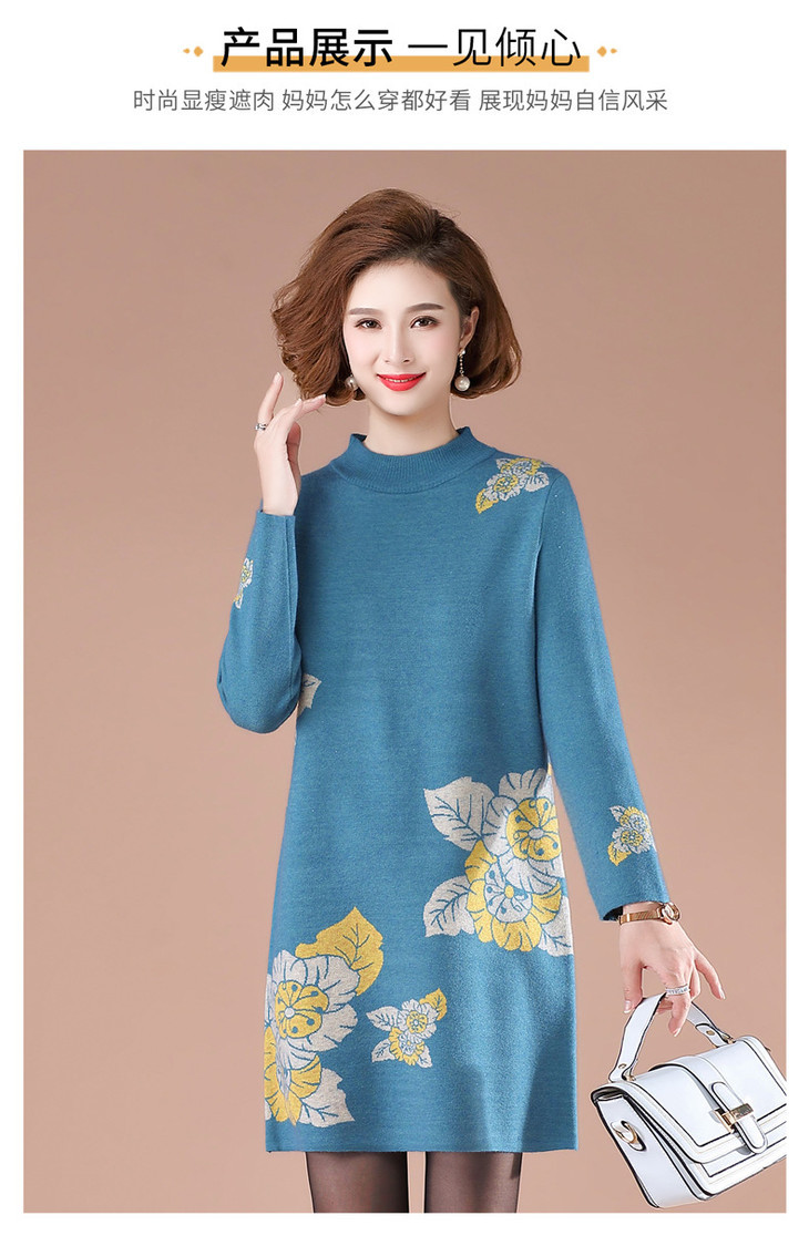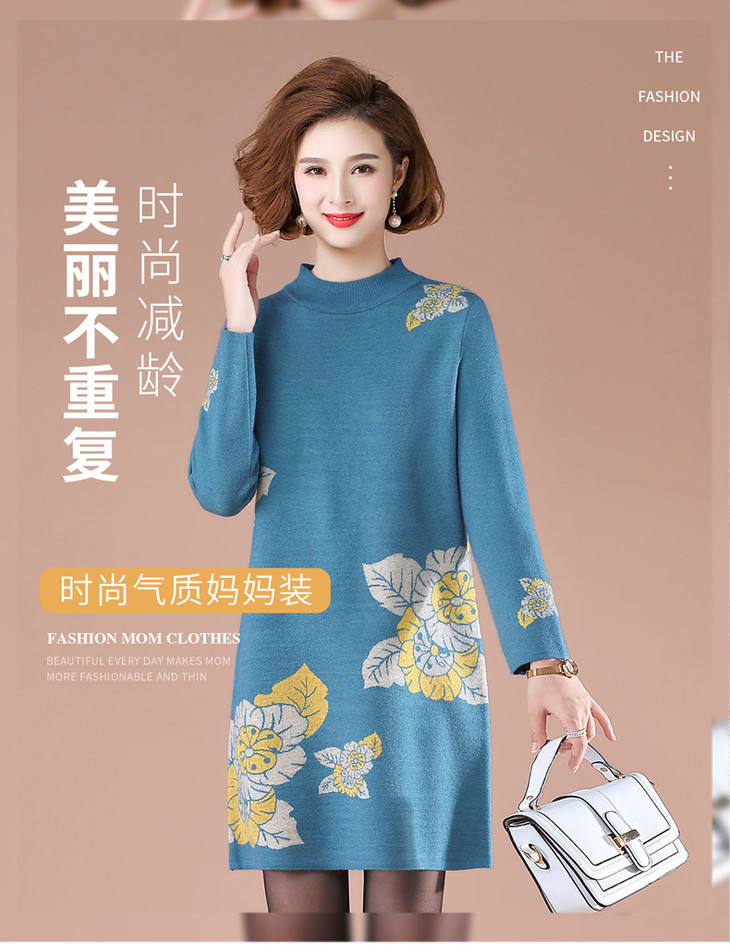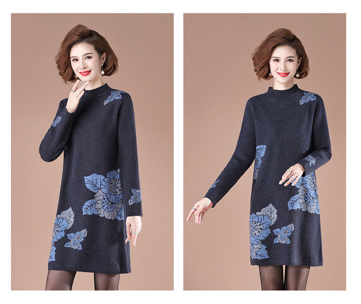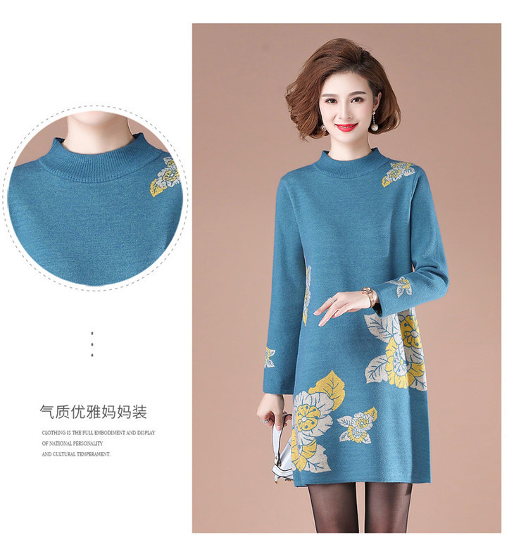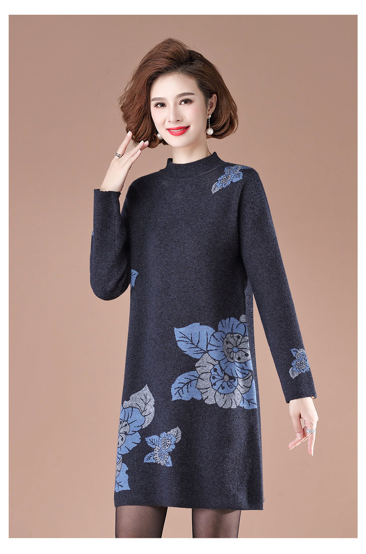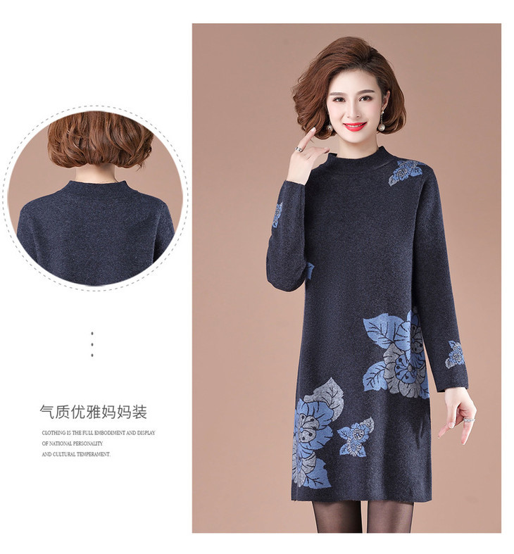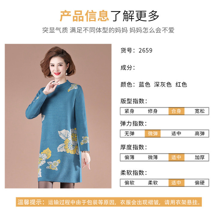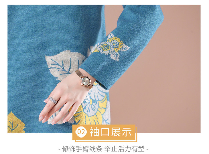 TYMY2659U7510A新款时尚优雅气质休闲宽松半高领长袖印花连衣裙