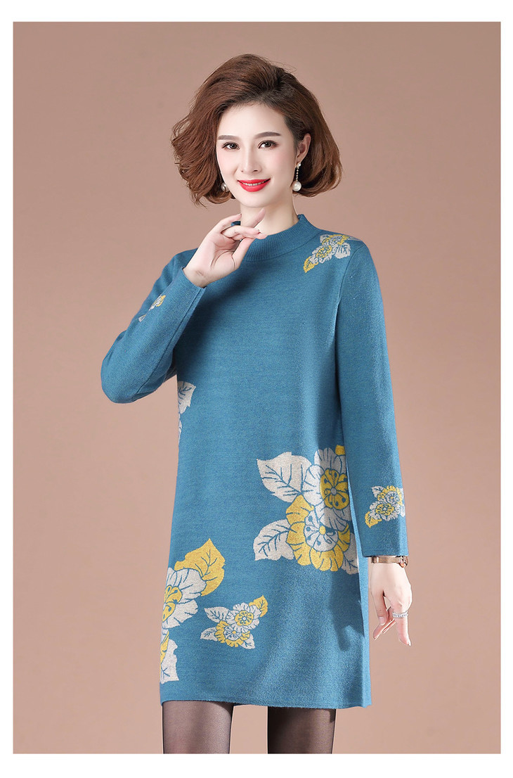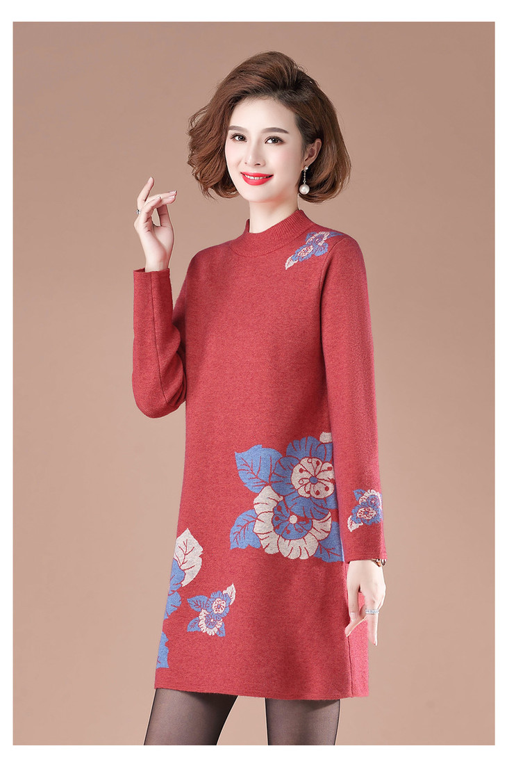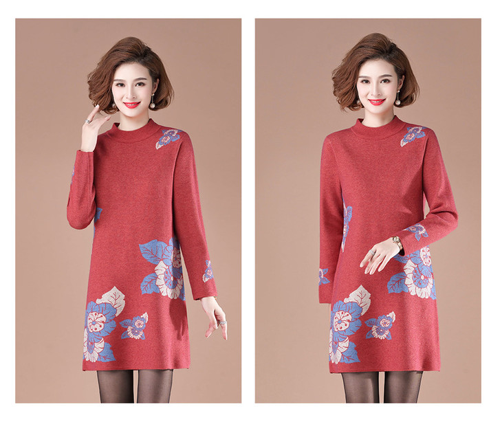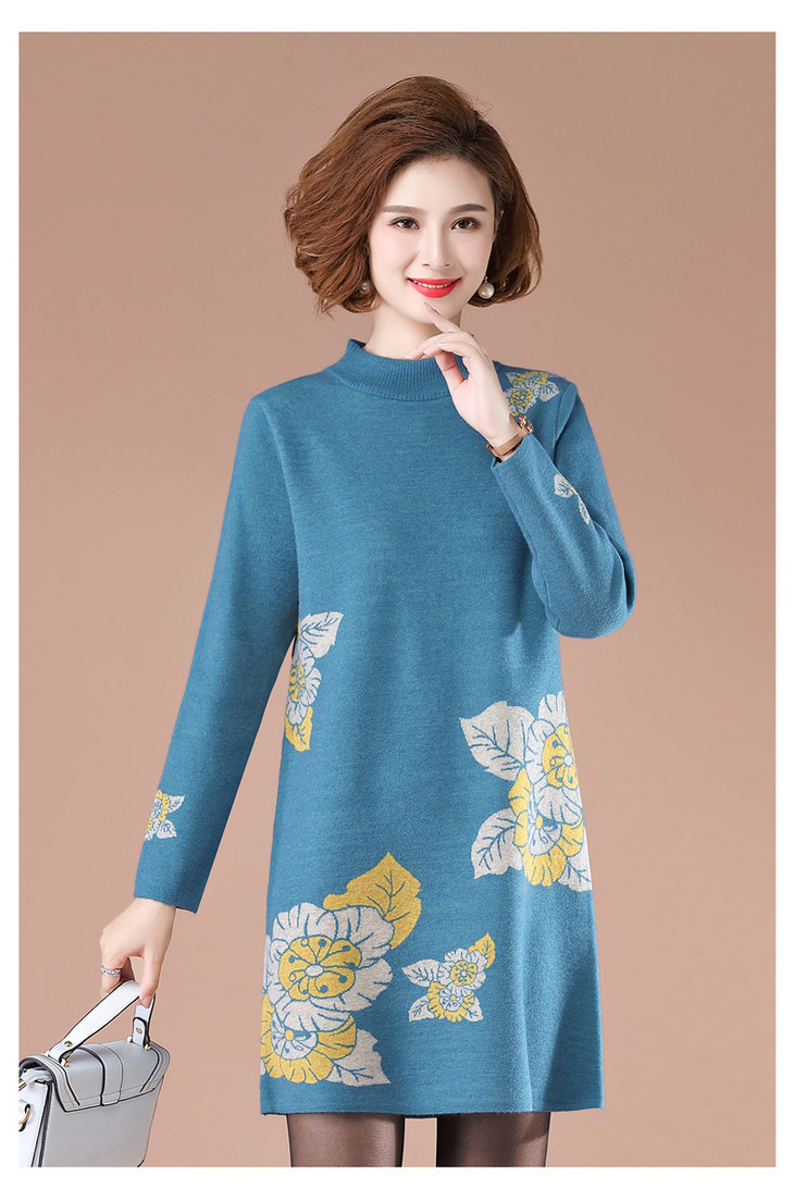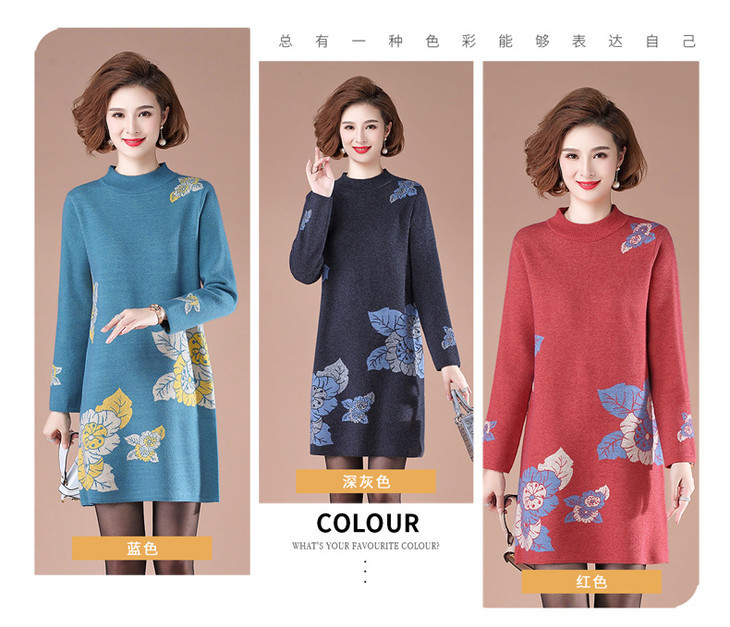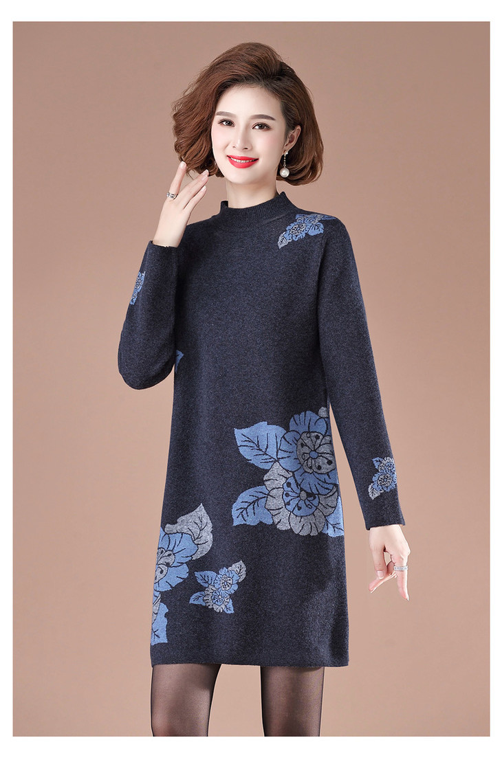TYMY2659U7510A新款时尚优雅气质休闲宽松半高领长袖印花连衣裙