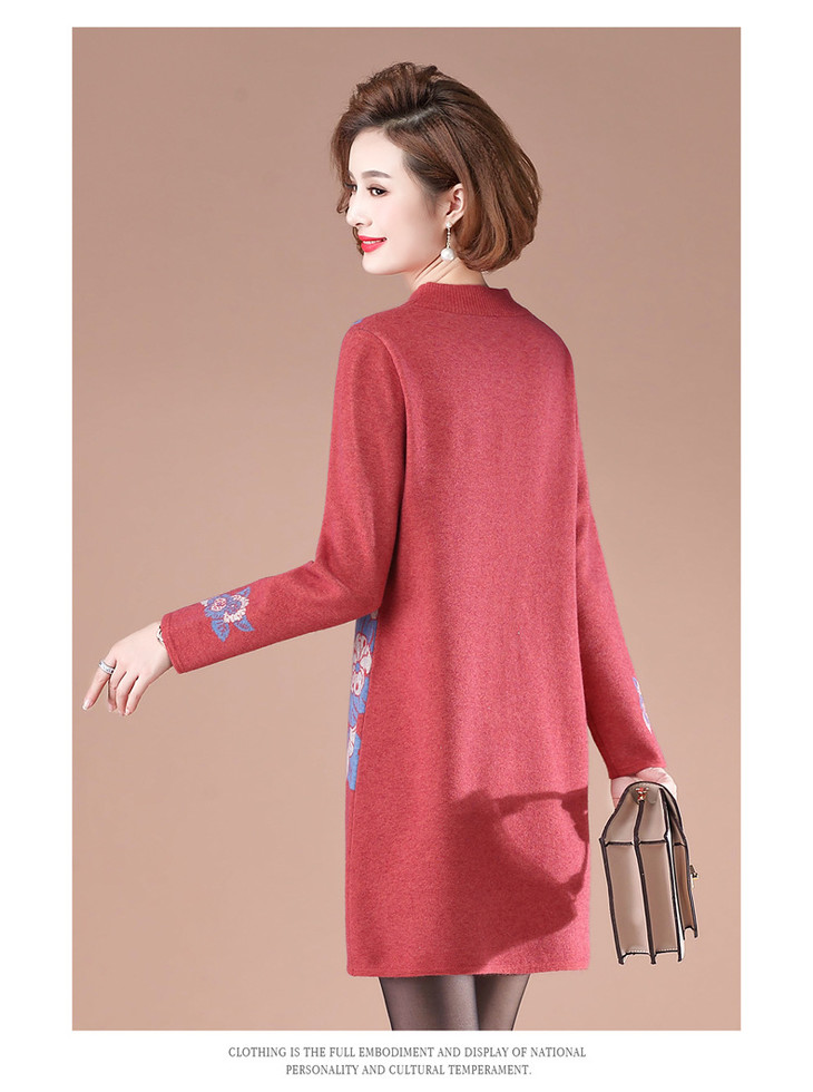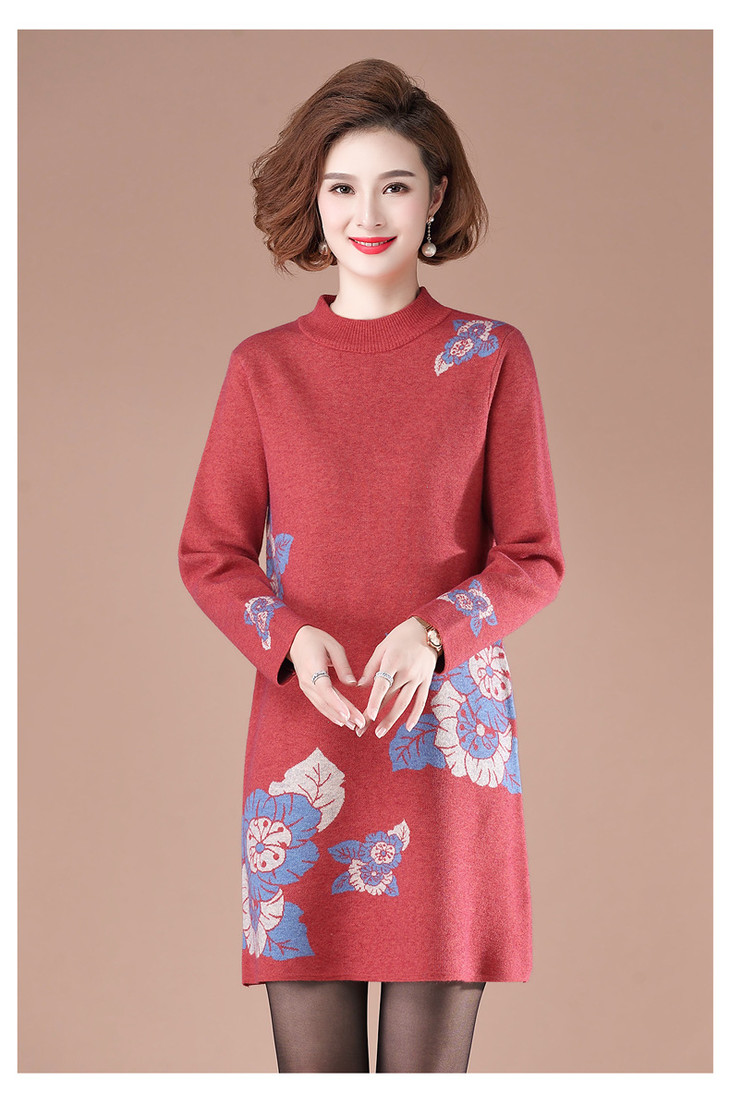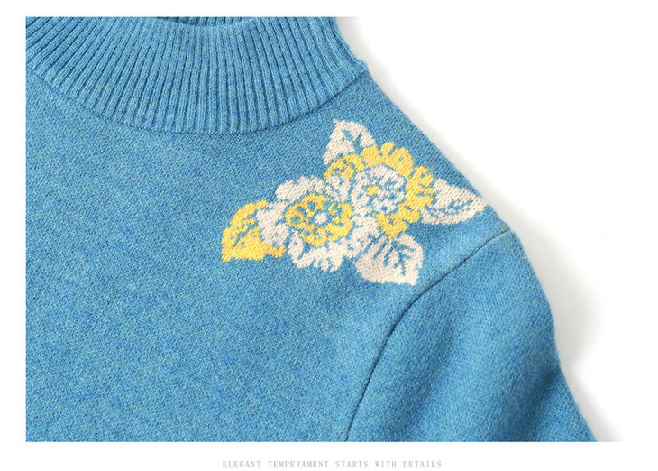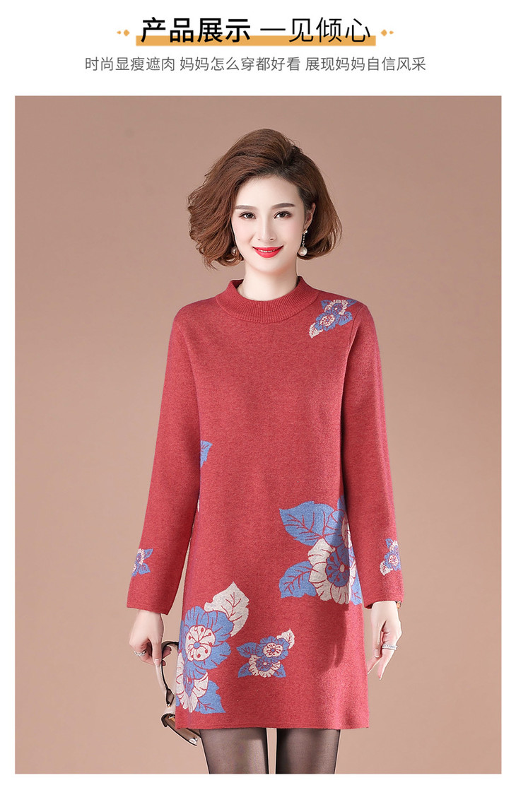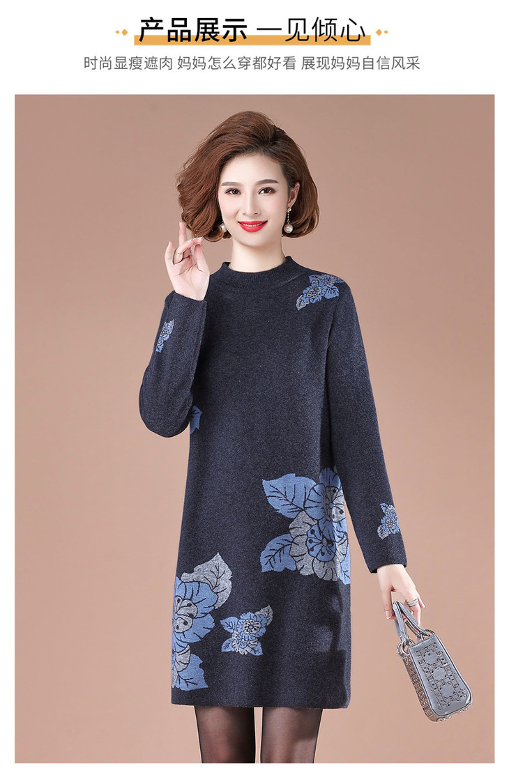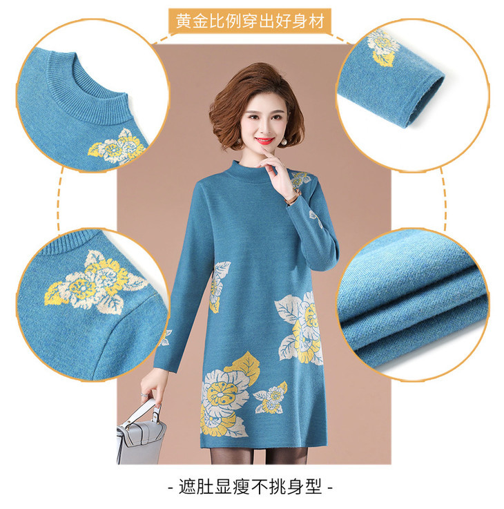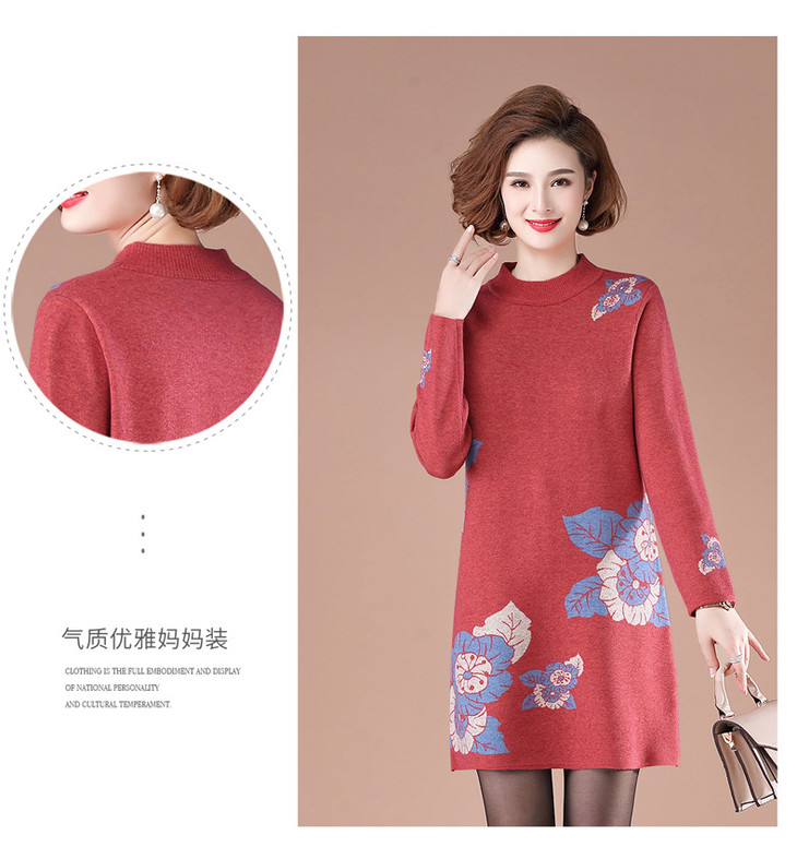 TYMY2659U7510A新款时尚优雅气质休闲宽松半高领长袖印花连衣裙