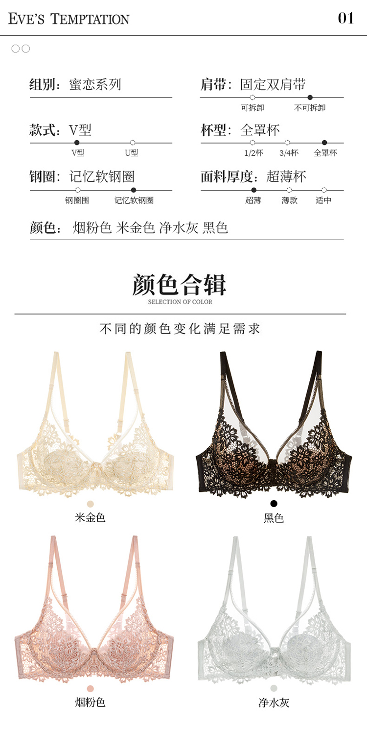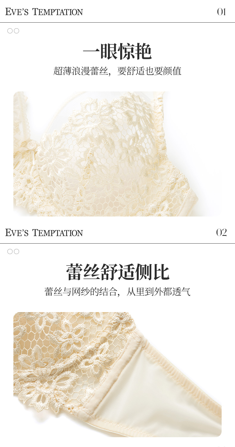 【蜜恋】夏娃的诱惑内衣女2026新款薄款大胸显小防下垂性感蕾丝文胸