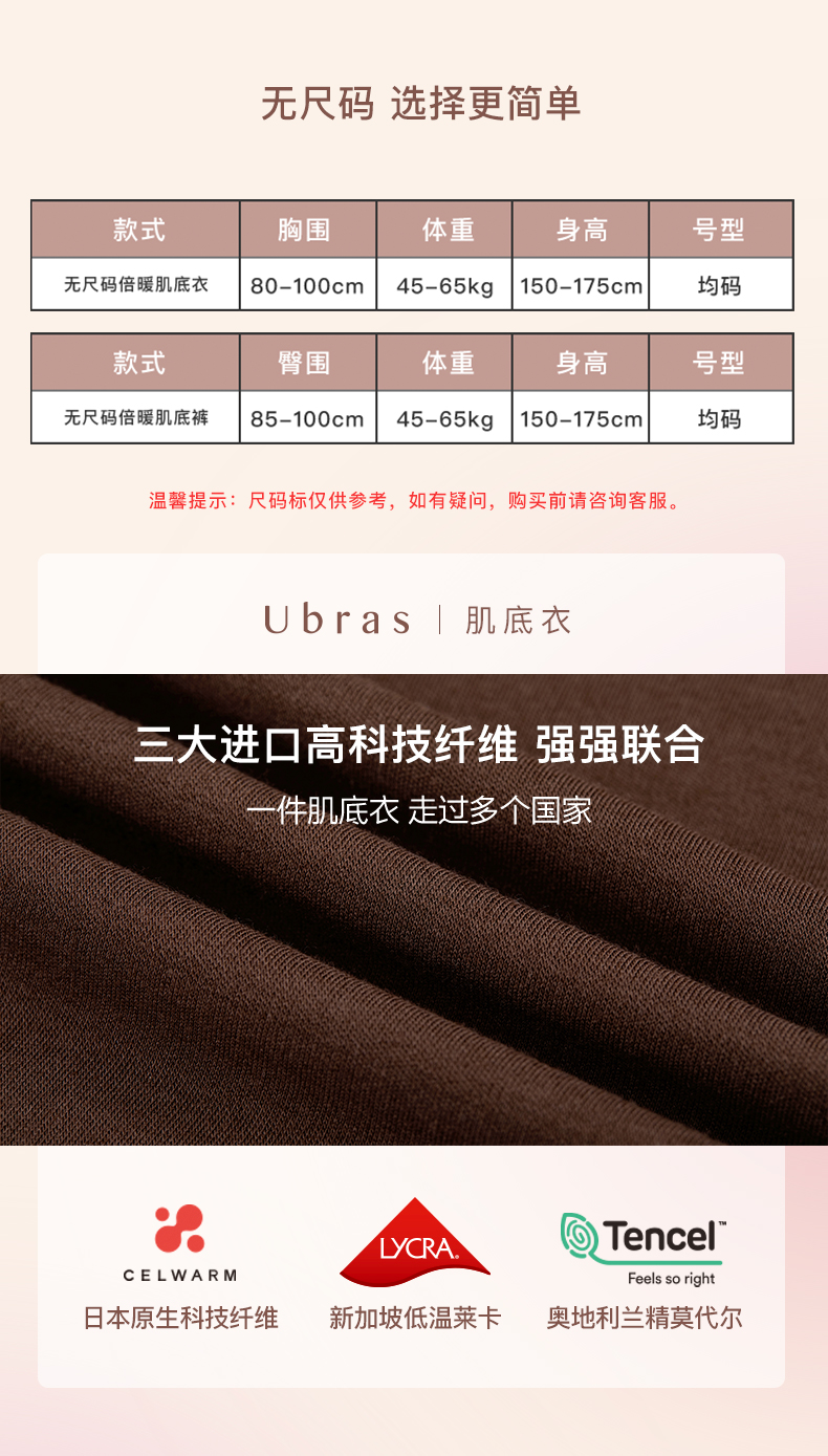 小黑盒X Ubras无尺码倍暖肌底衣裤套装发热保暖内衣celwarm