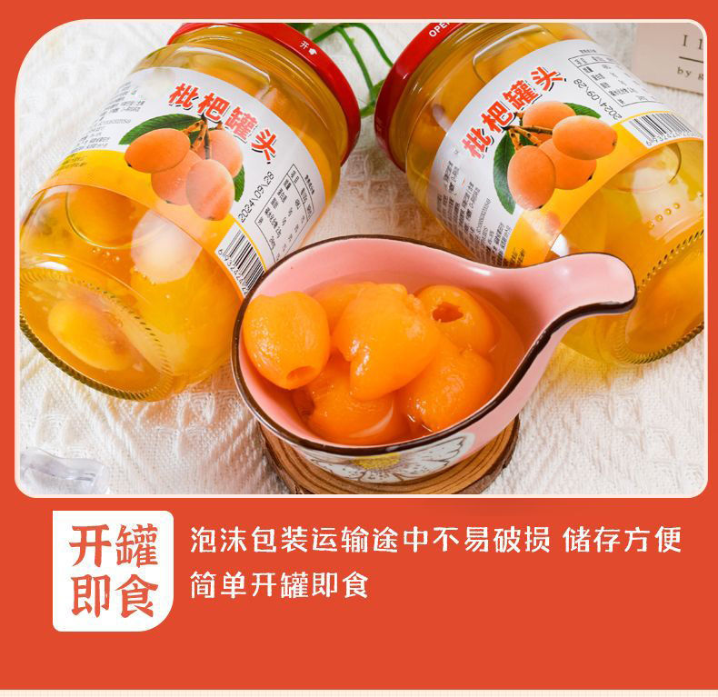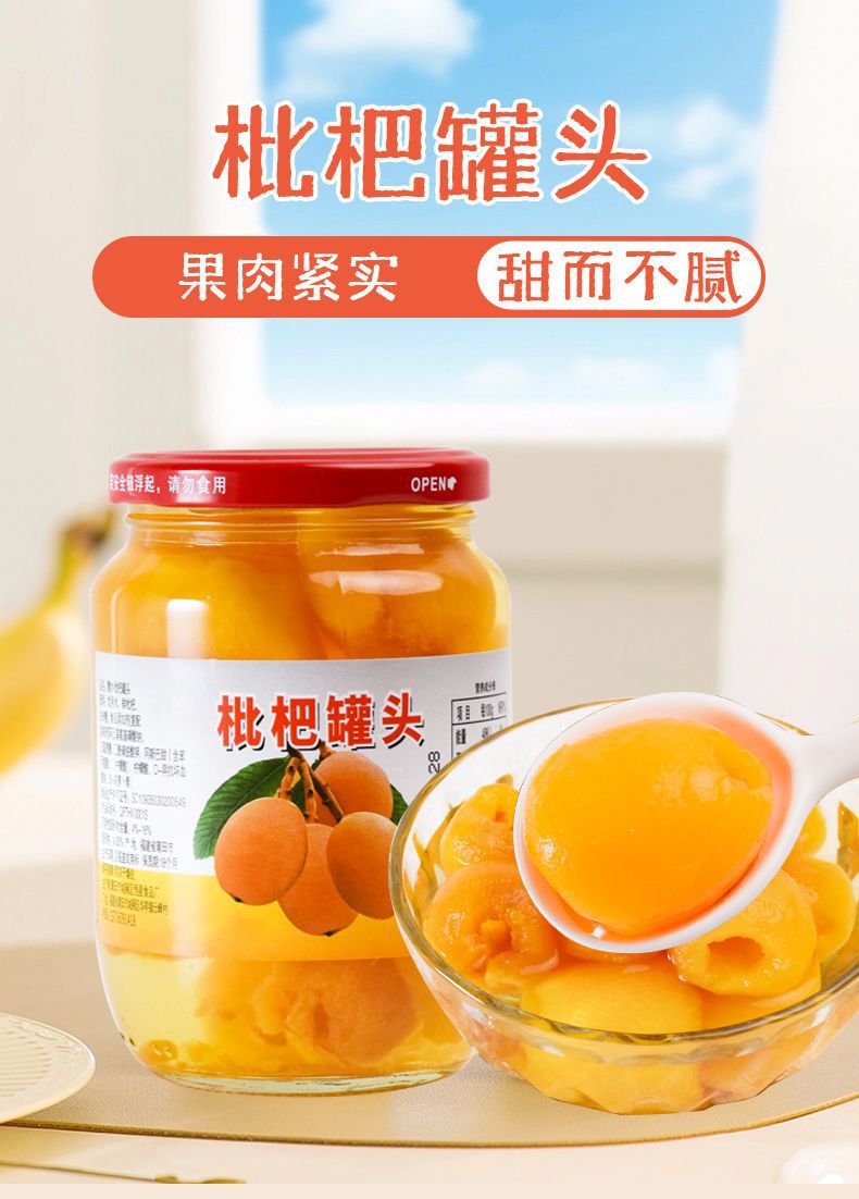 【好吃不腻❗老少皆宜】新鲜枇杷罐头当季大果肉糖水水果罐头现摘即食罐装整箱商用。rh