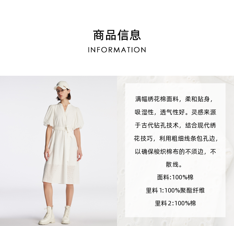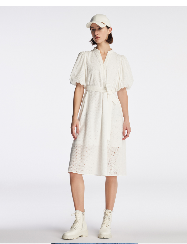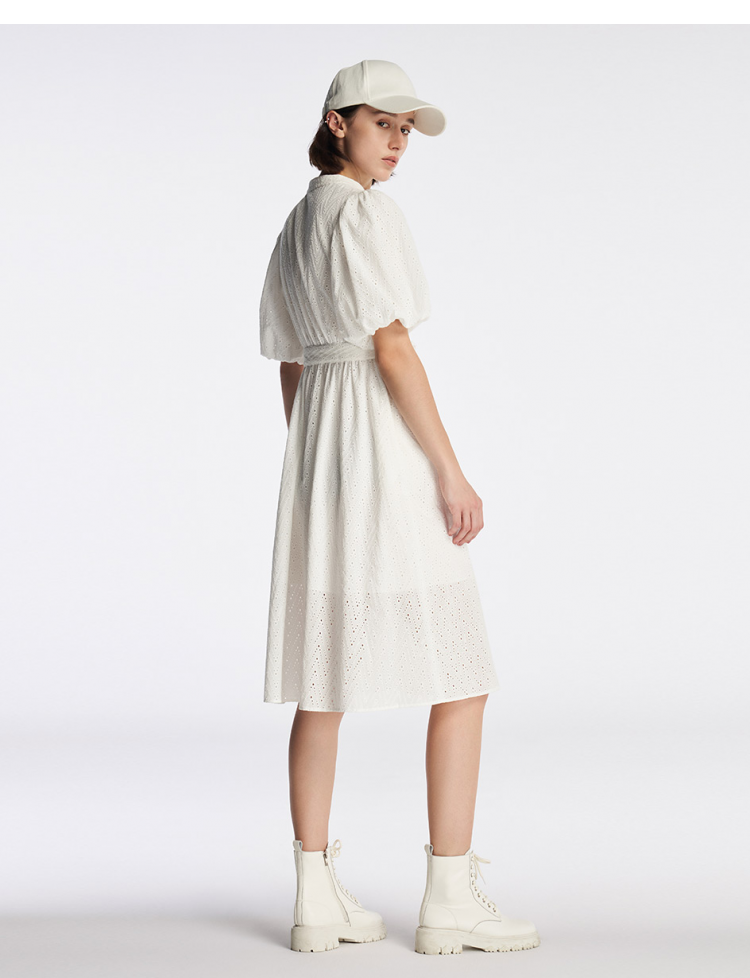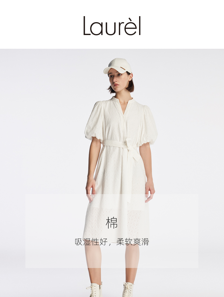 Laurel劳芮23法式气质镂空泡泡袖连衣裙LWL342Y14500