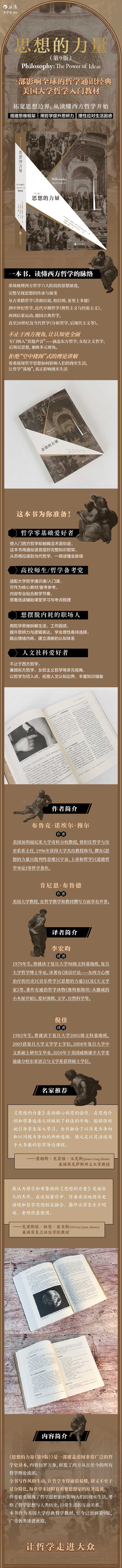 《思想的力量》是部精心构思的佳作,在思想介绍和原著选读之间做到了极佳的平衡,能够很好地引导学生深入学习。全书融合了以历史为导向和以问题为导向的两种进路,使之足以灵活适用于大多数的哲学导论课程。