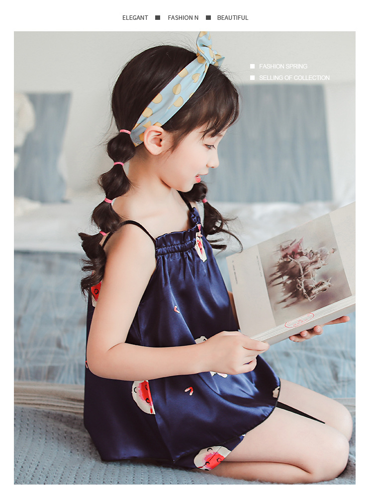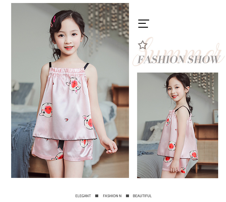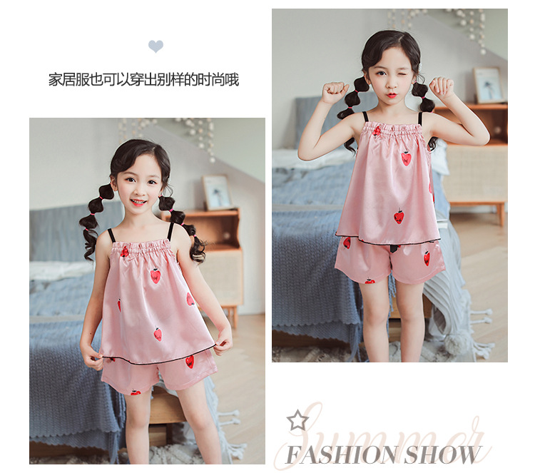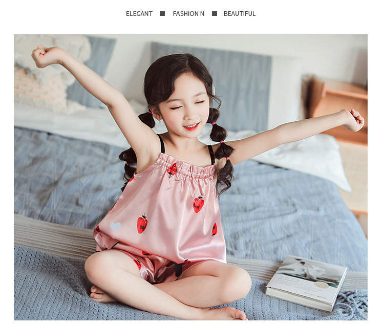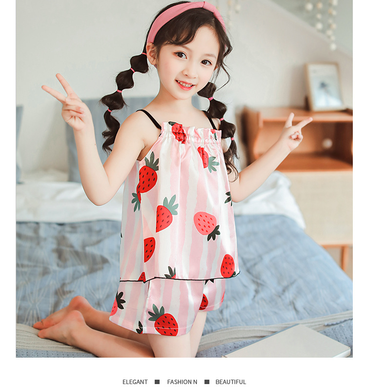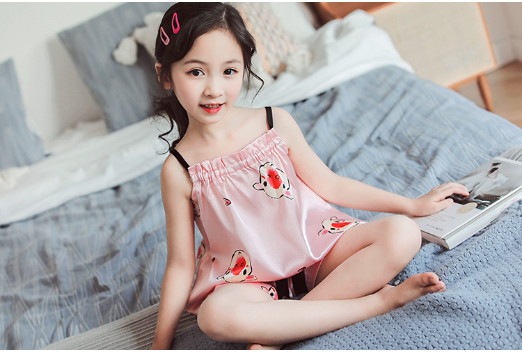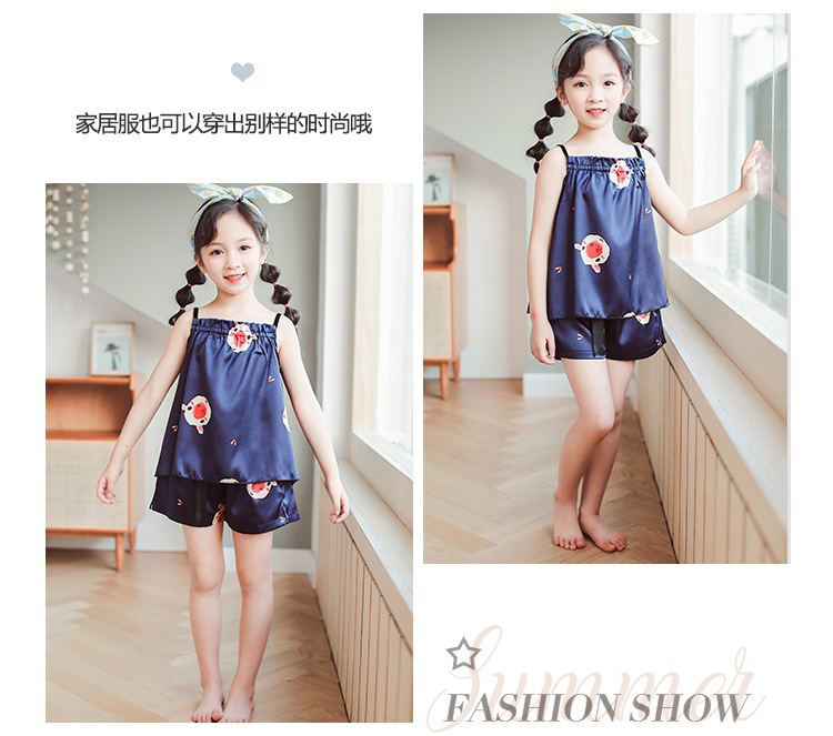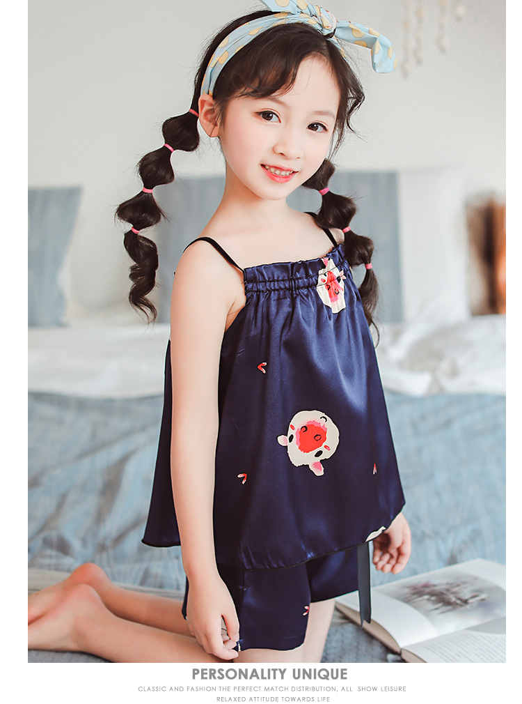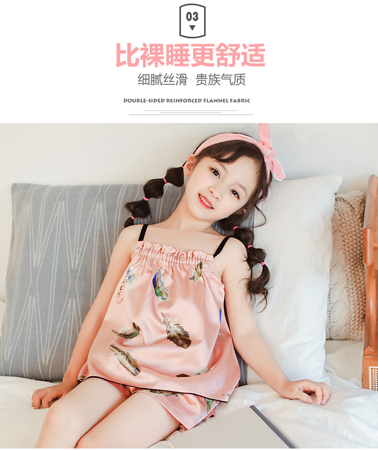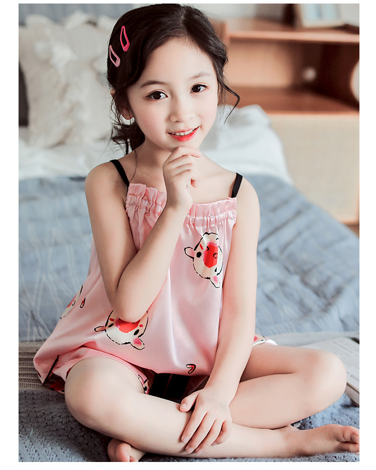 TM-夏季新款女童睡衣冰丝中大童仿真丝吊带空调服