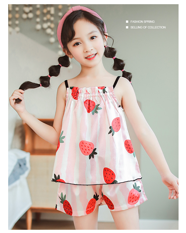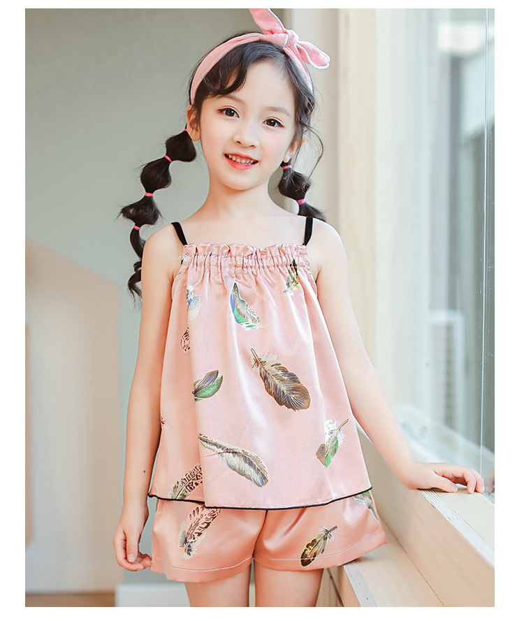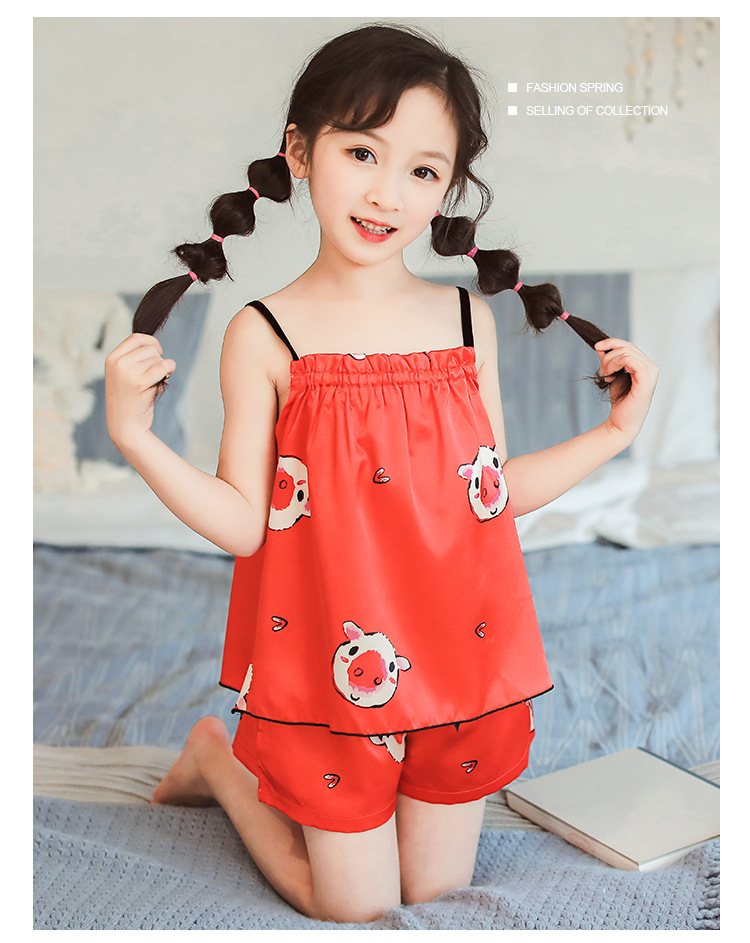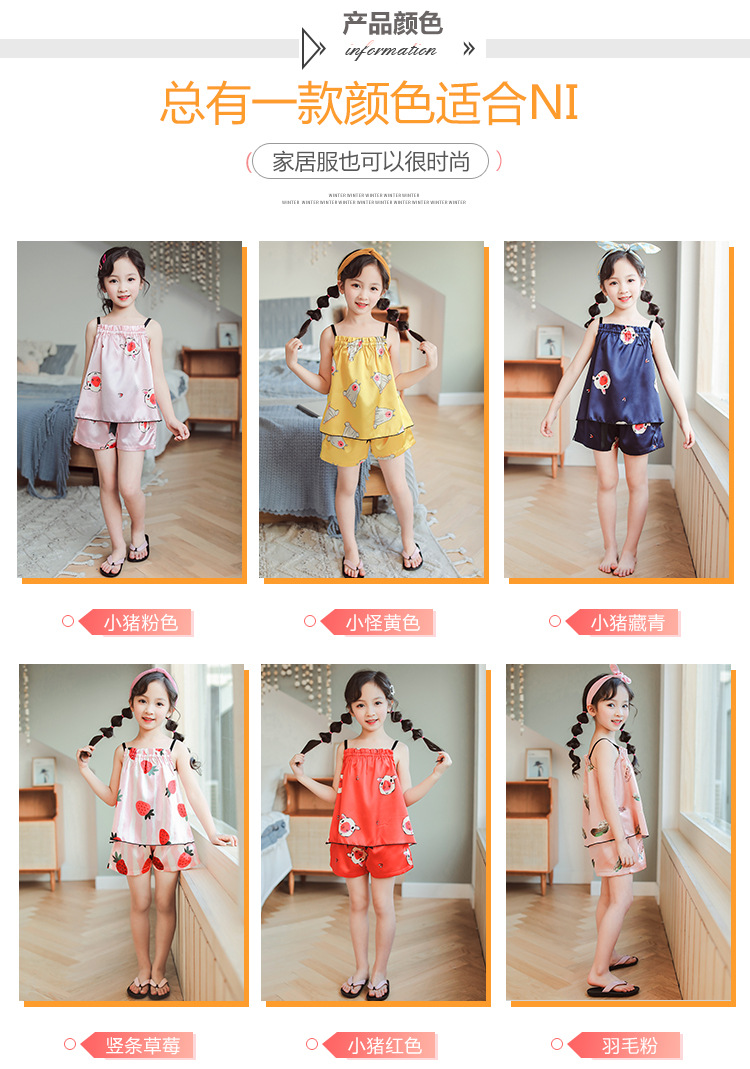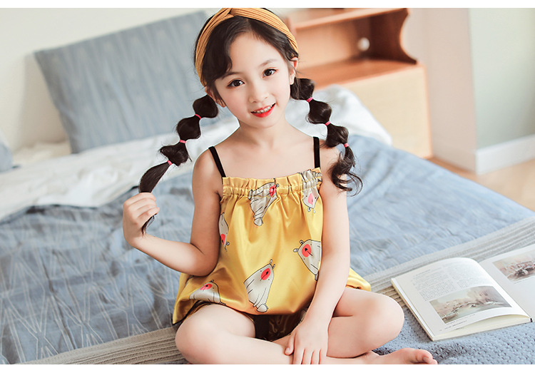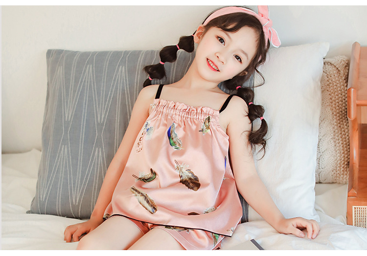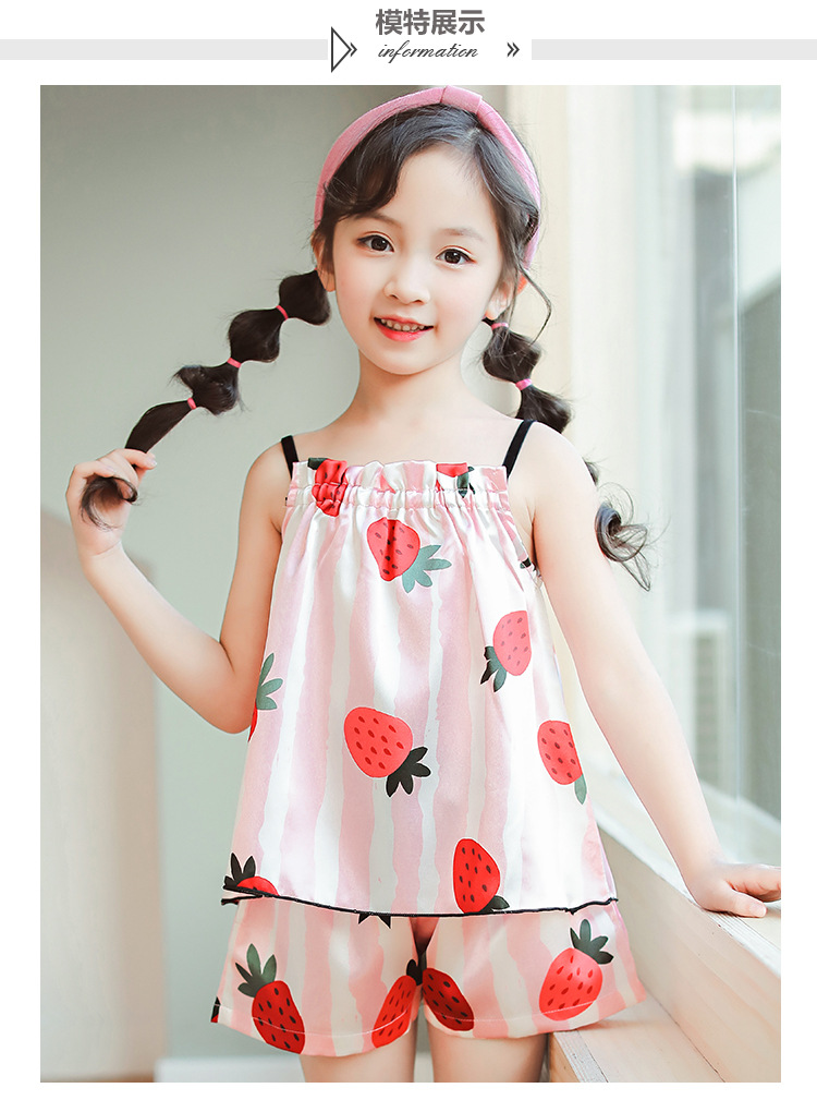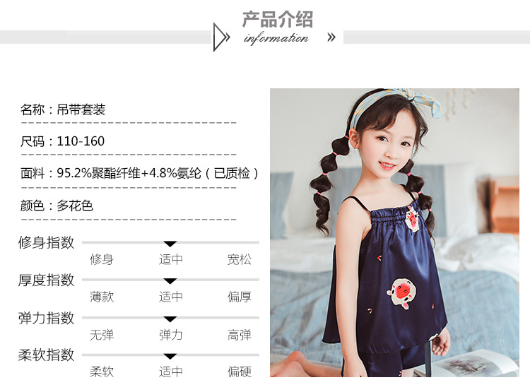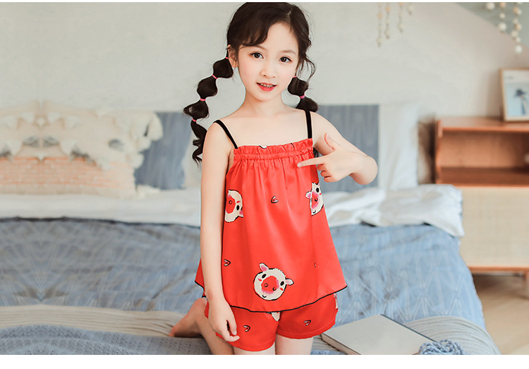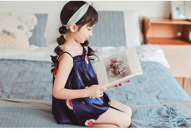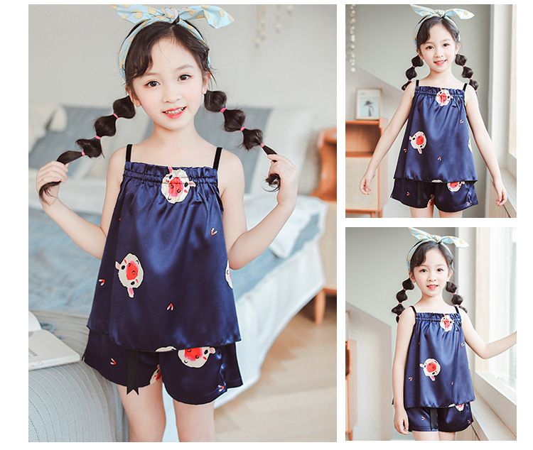TM-夏季新款女童睡衣冰丝中大童仿真丝吊带空调服
