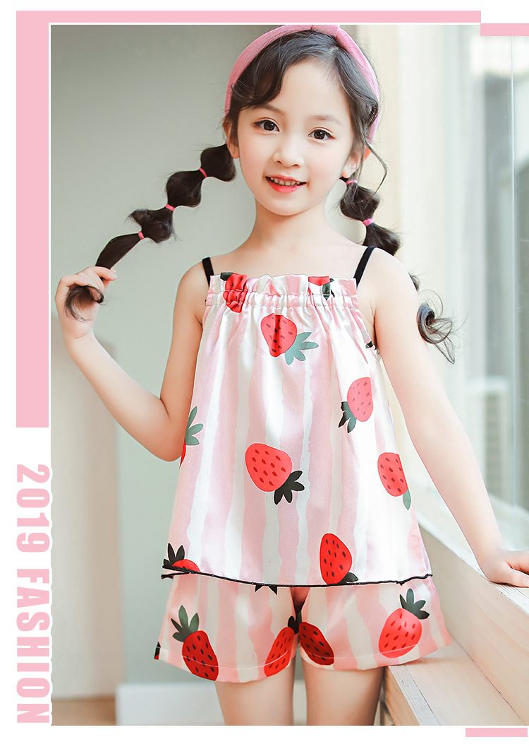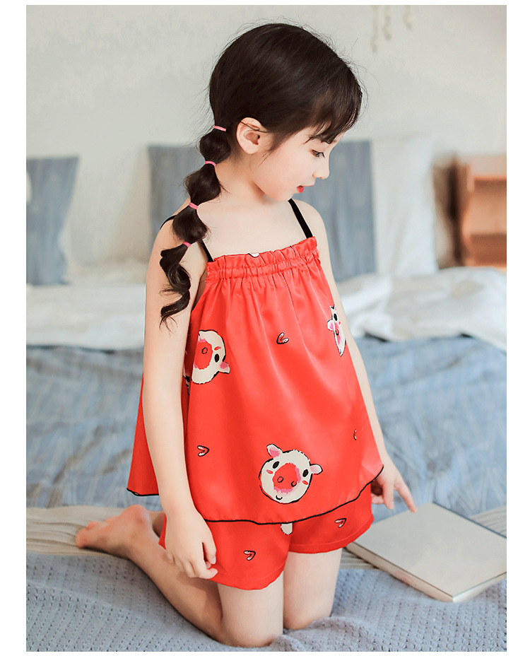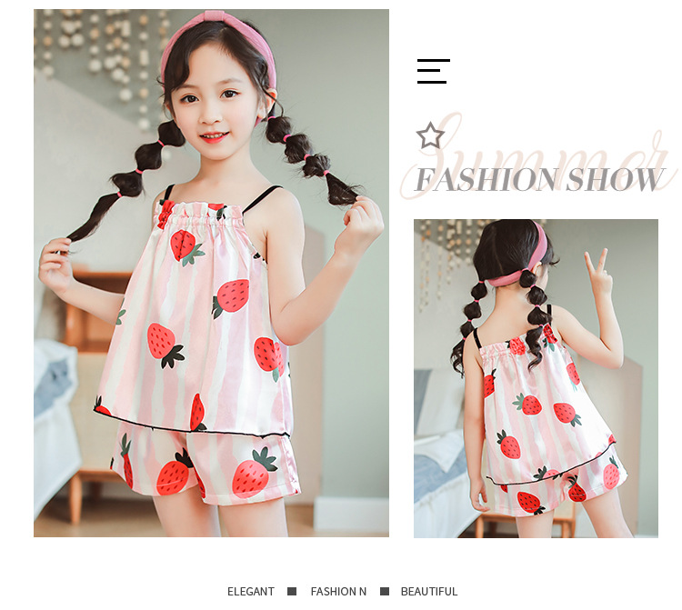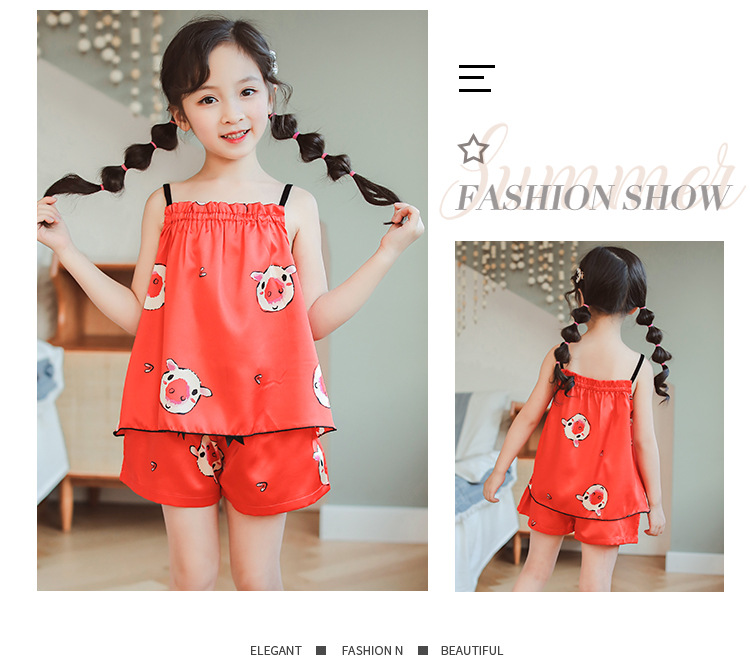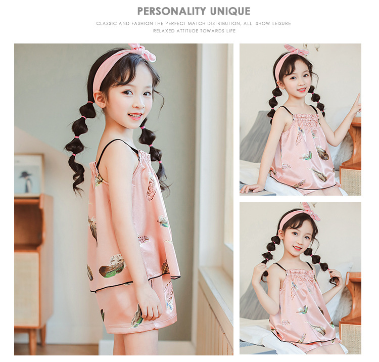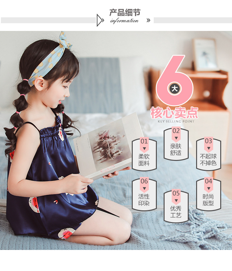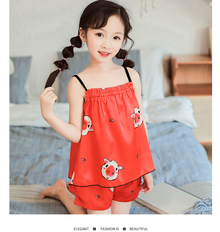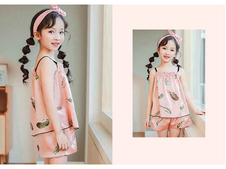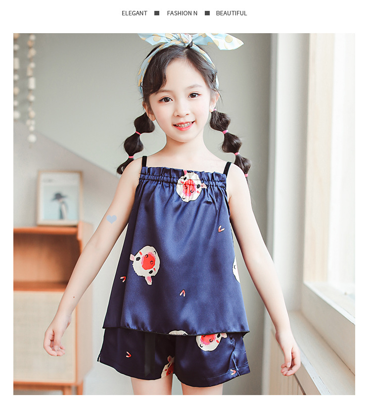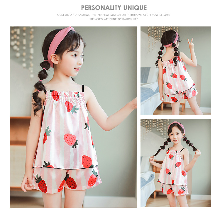 TM-夏季新款女童睡衣冰丝中大童仿真丝吊带空调服