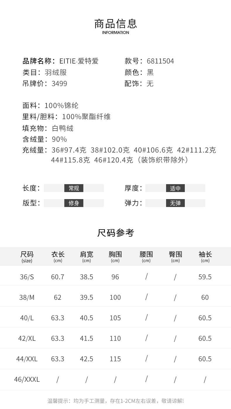 EITIE爱特爱冬季新款白鸭绒气质修身羽绒服外套6811504