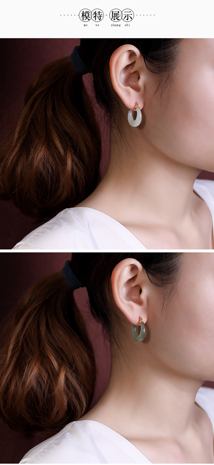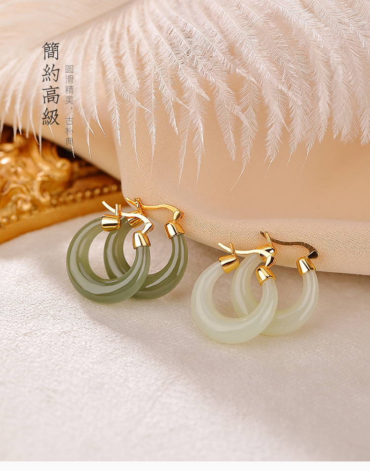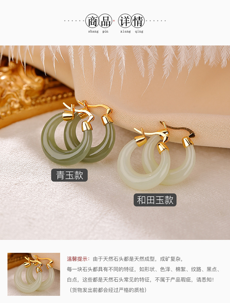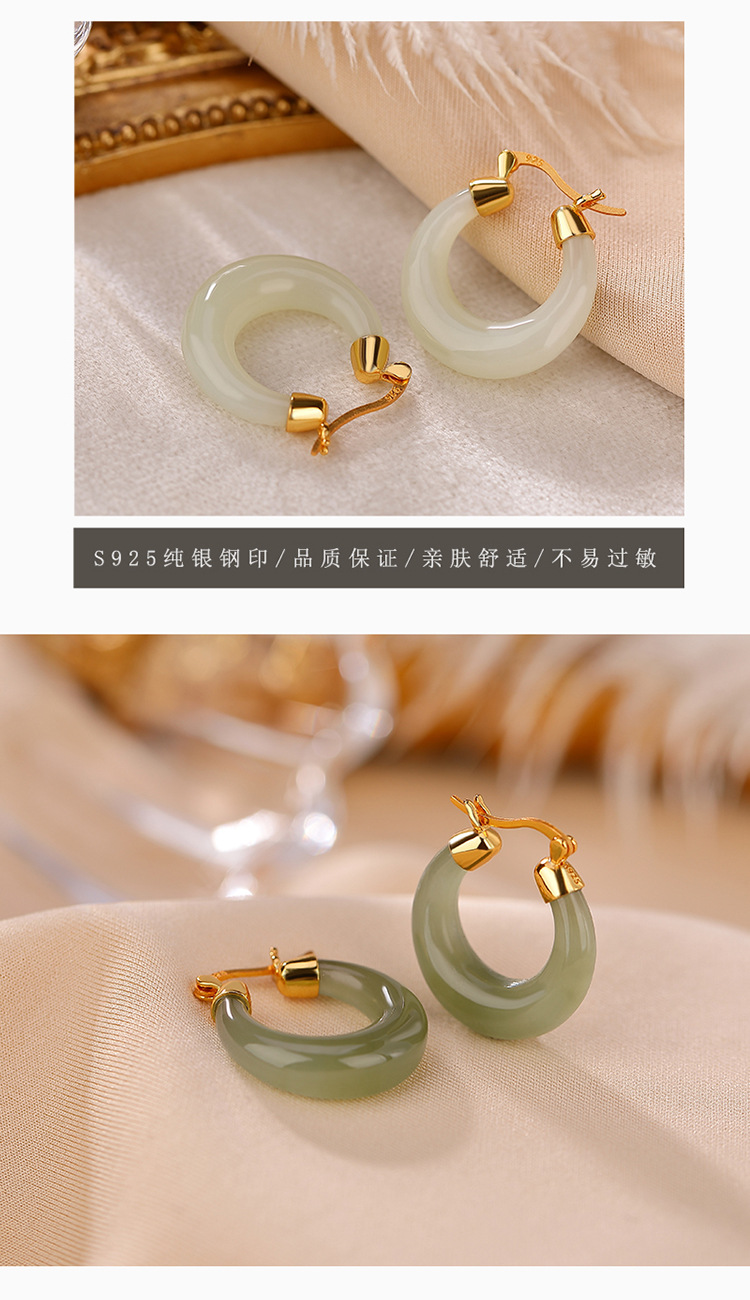 S925纯银镀金和田玉青玉,简约气质月亮耳钉时尚百搭初夏耳饰CW-189