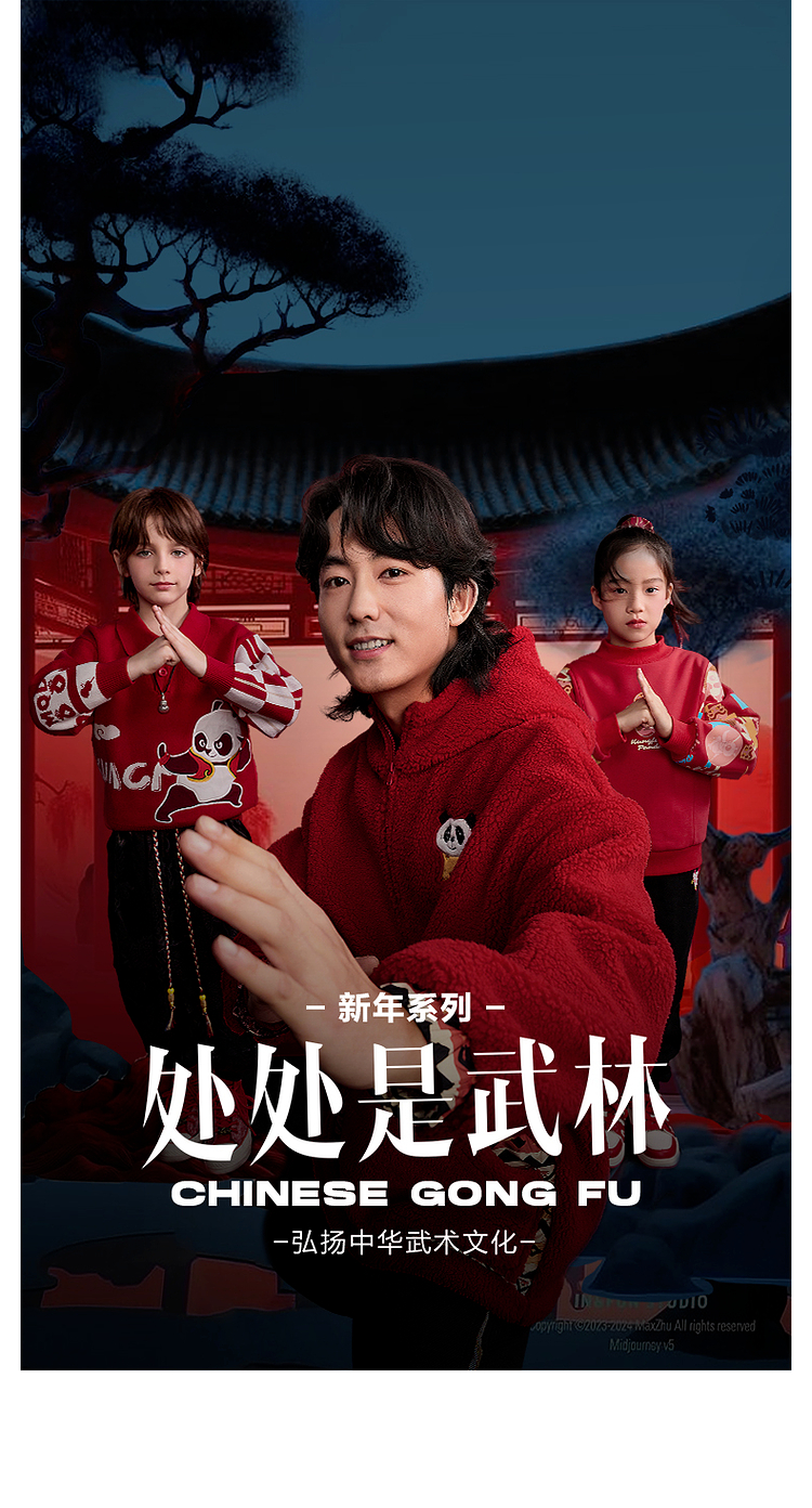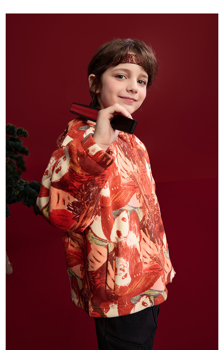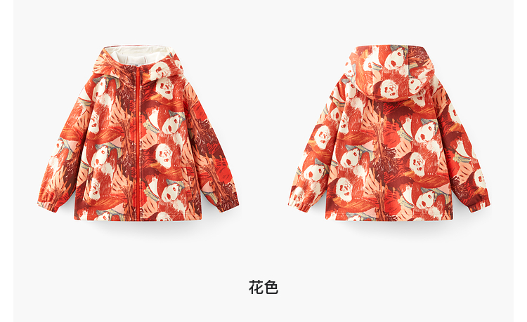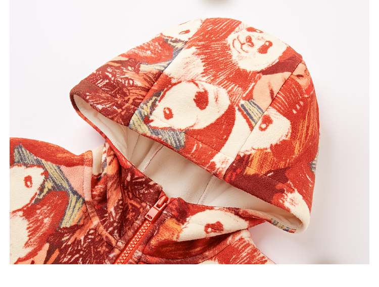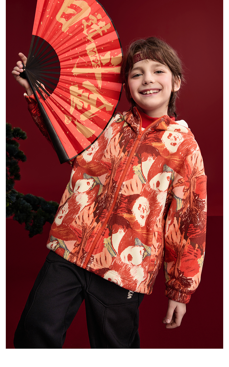 【MQD】童装男童红色外套冬装新款连帽保暖熊猫新年拜年服上衣