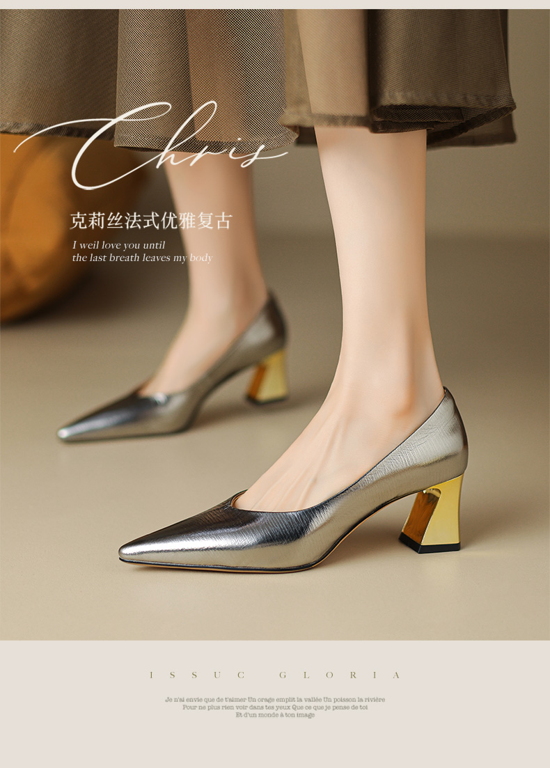 时尚新款,真皮亮面尖头高跟单鞋YT-932-5