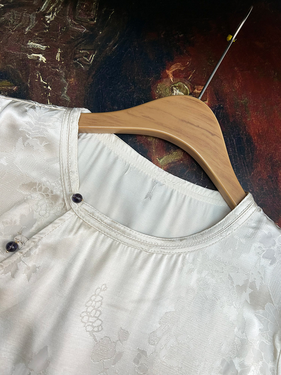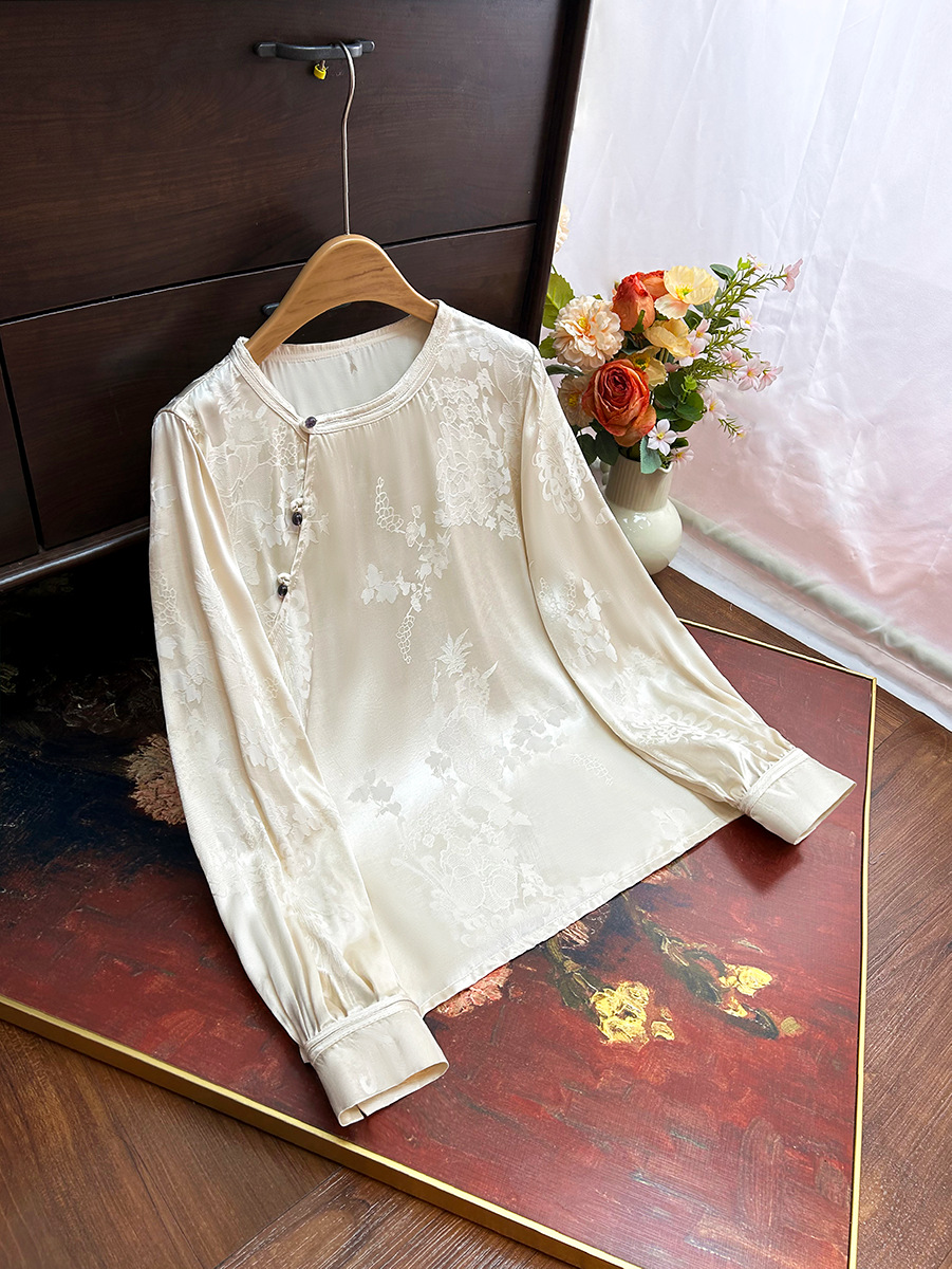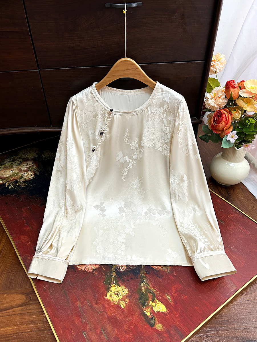 丁摩 新中式斜襟衬衫春季新款高端人丝提花复古国风百搭衬衣上衣6ZF-3235