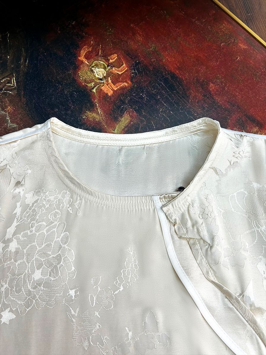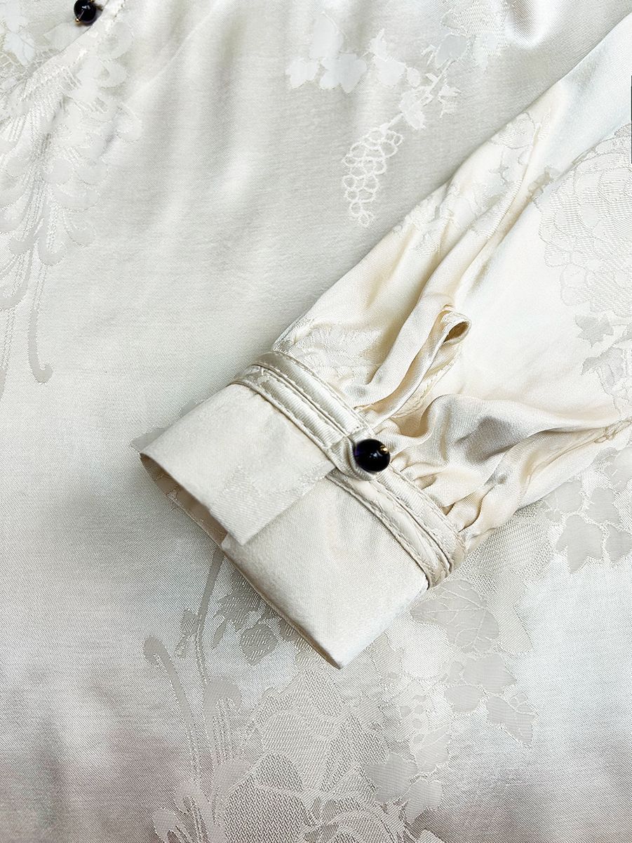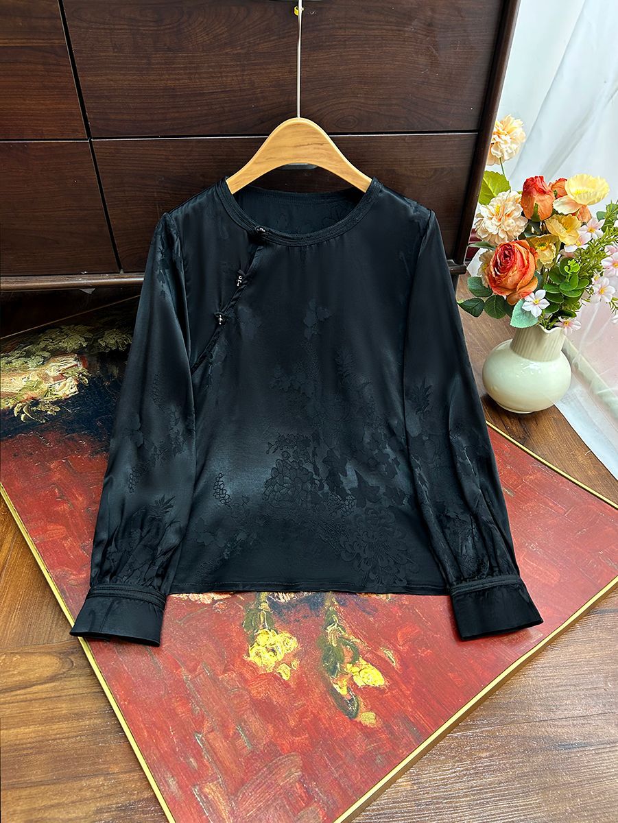 丁摩 新中式斜襟衬衫春季新款高端人丝提花复古国风百搭衬衣上衣6ZF-3235