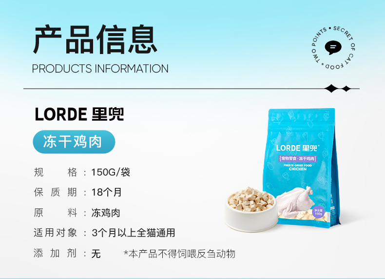 【营养增肥】LORDE里兜 宠物零食冻干鸡肉150g
