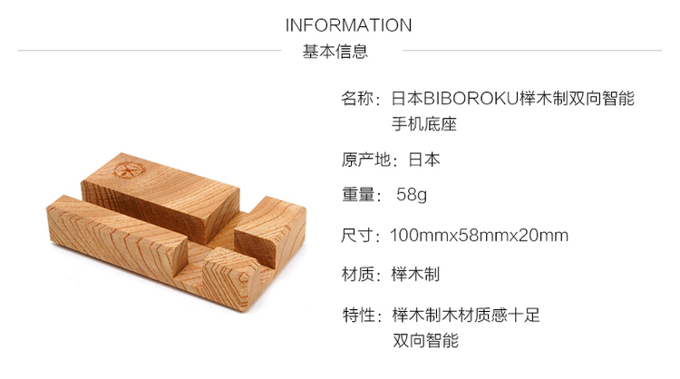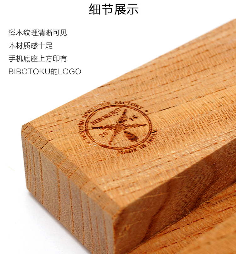 手机底座日本进口手机支架BIBOROKU榉木双向智能手机底座的宝贝详情页