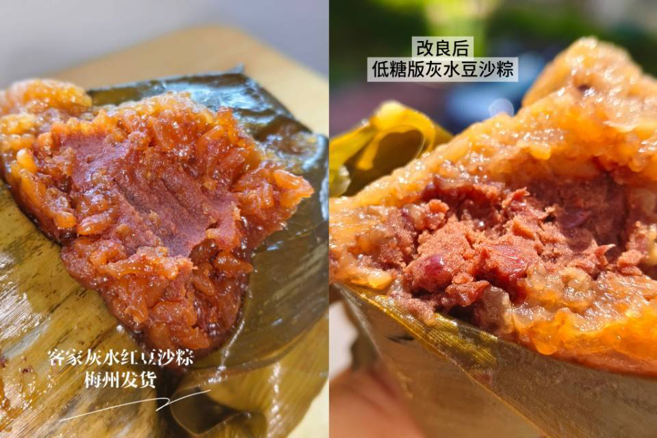 灰水粽有两个口味(原味灰水,低糖红豆沙灰水粽)
