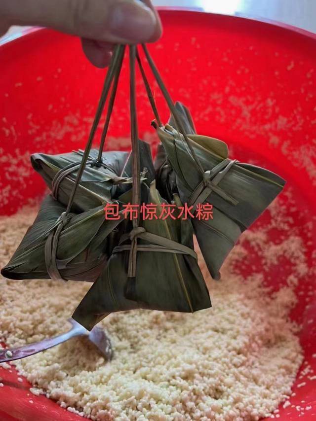 其中最辛苦的环节就是从砍布惊树到烧成布惊灰。所以,现在很多人是用化学碱代替布惊碱,但我们追求的就是这种纯植物的布惊灰水粽子,就要这个味!天然的味道,儿时过节的味道!