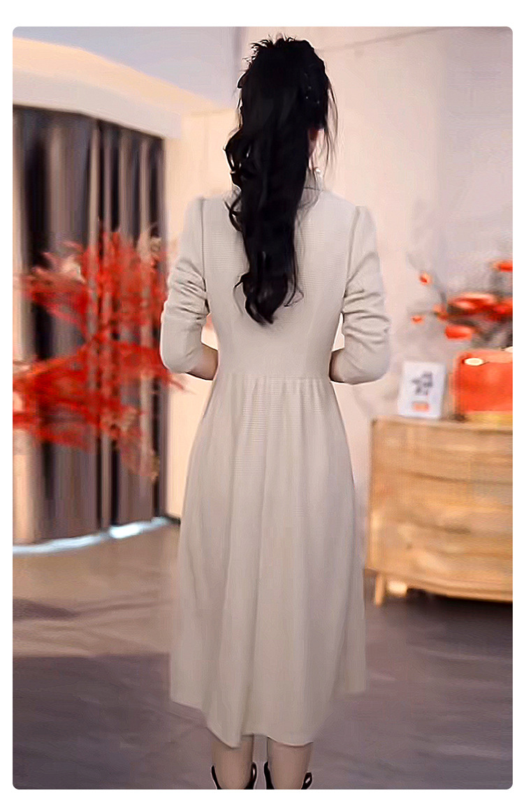 QYM 25PB50-Y时尚连衣裙气质收腰中长款洋气厚款裙 商品图3
