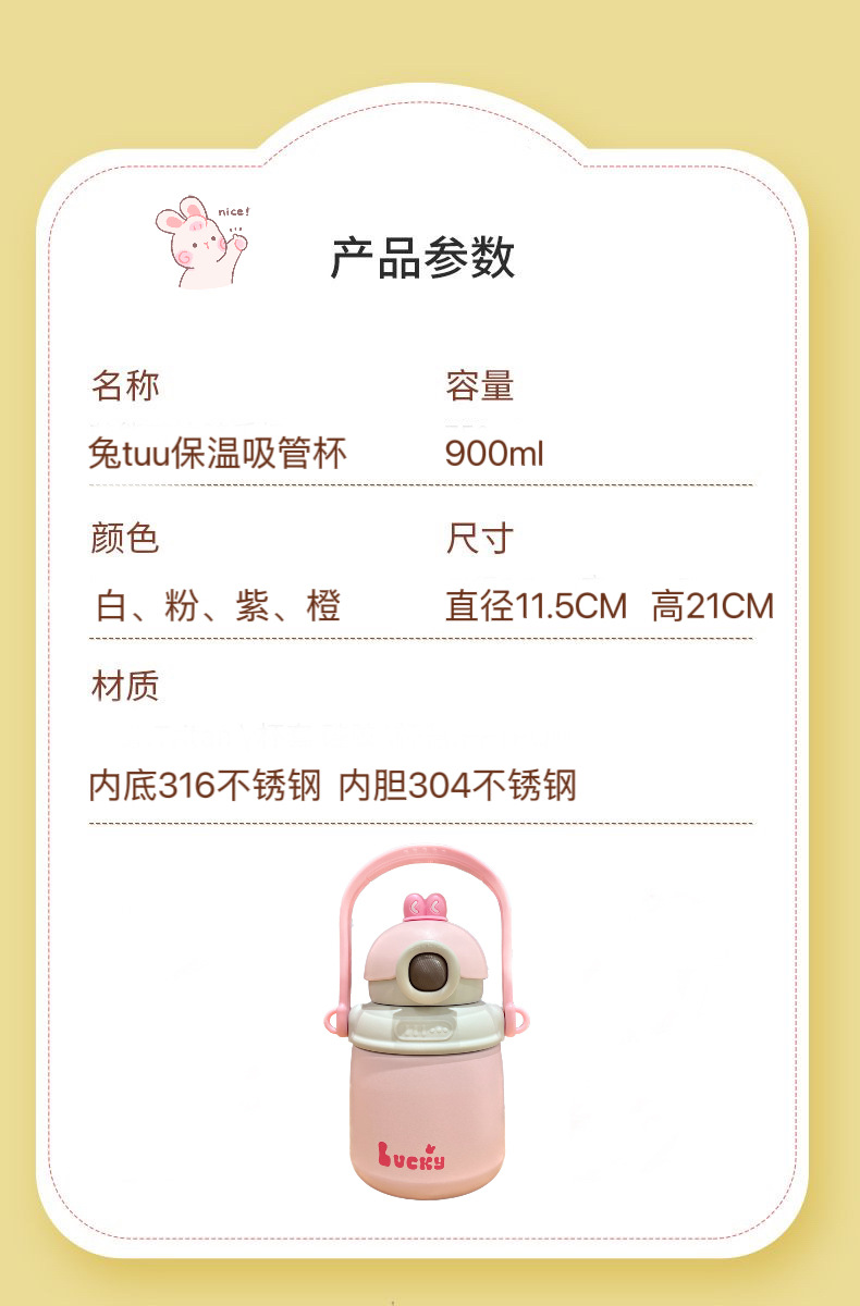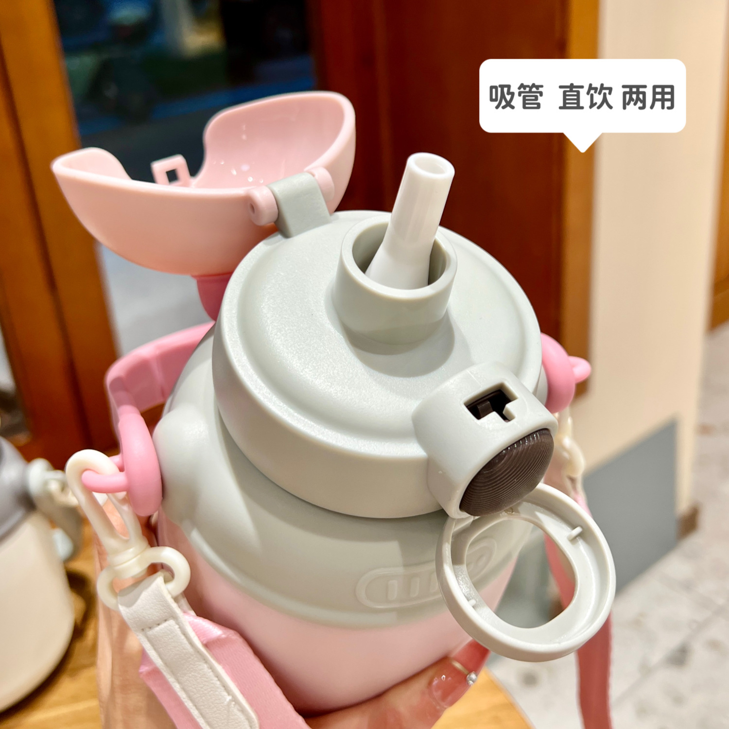 【大容量!儿童保温杯】保温杯女士儿童学生杯大容量水壶吸管水杯网红大肚杯上学水杯,吸管设计方便饮水,900m超大容量。ry