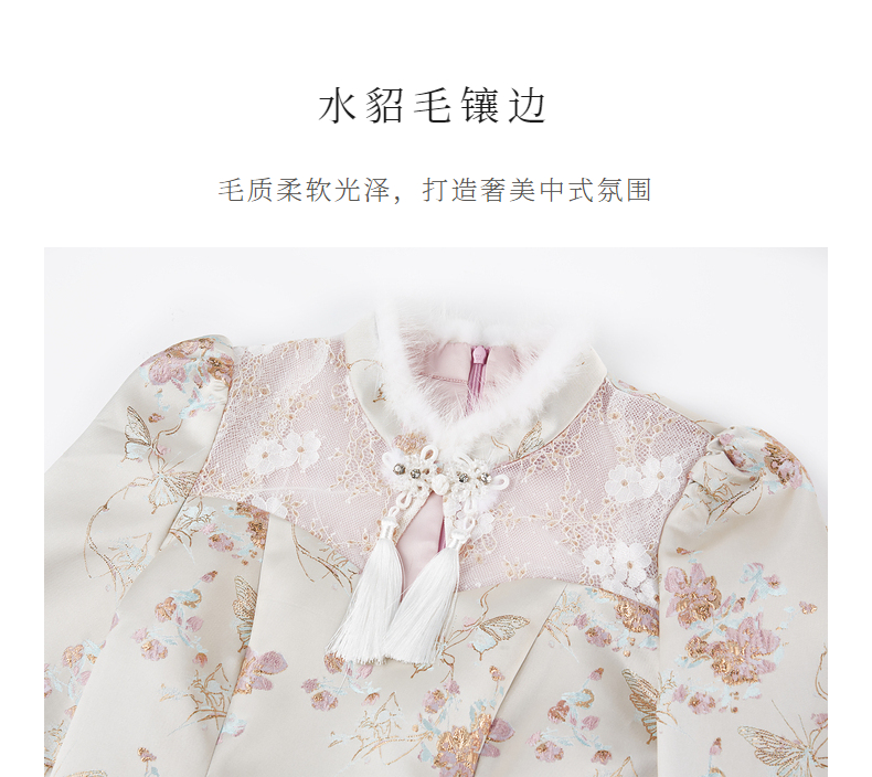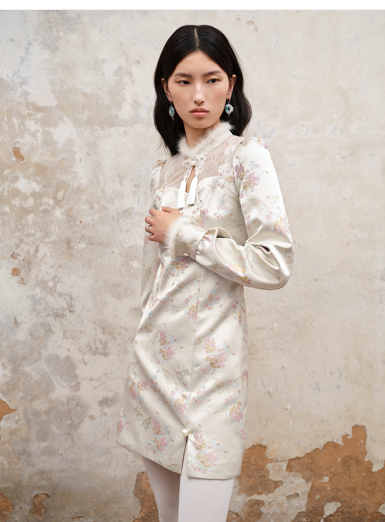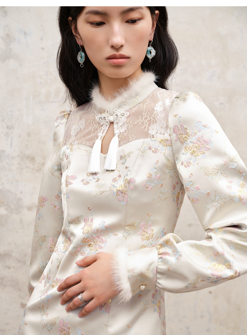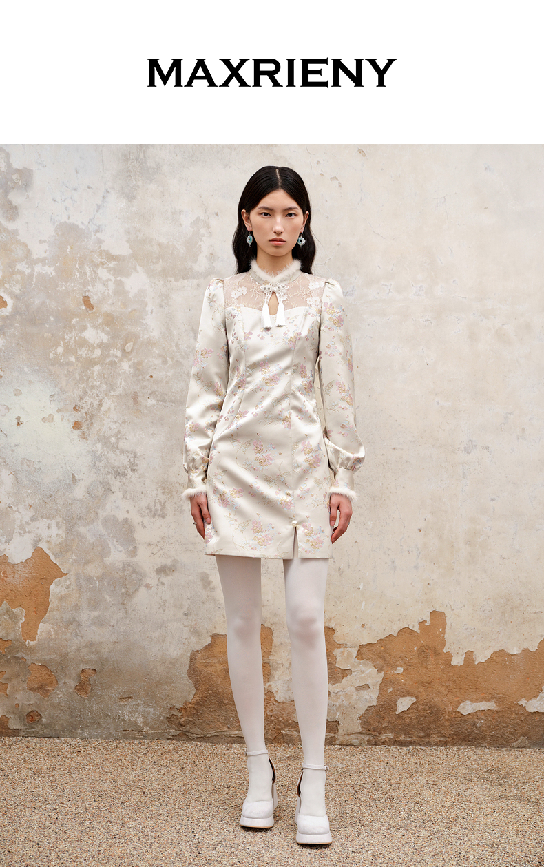 MAXRIENY新中式盘扣国风改良旗袍设计感印花修身显瘦秋冬连衣裙(货号:MS88DR512)