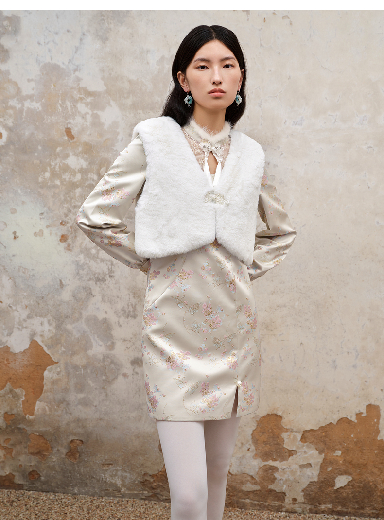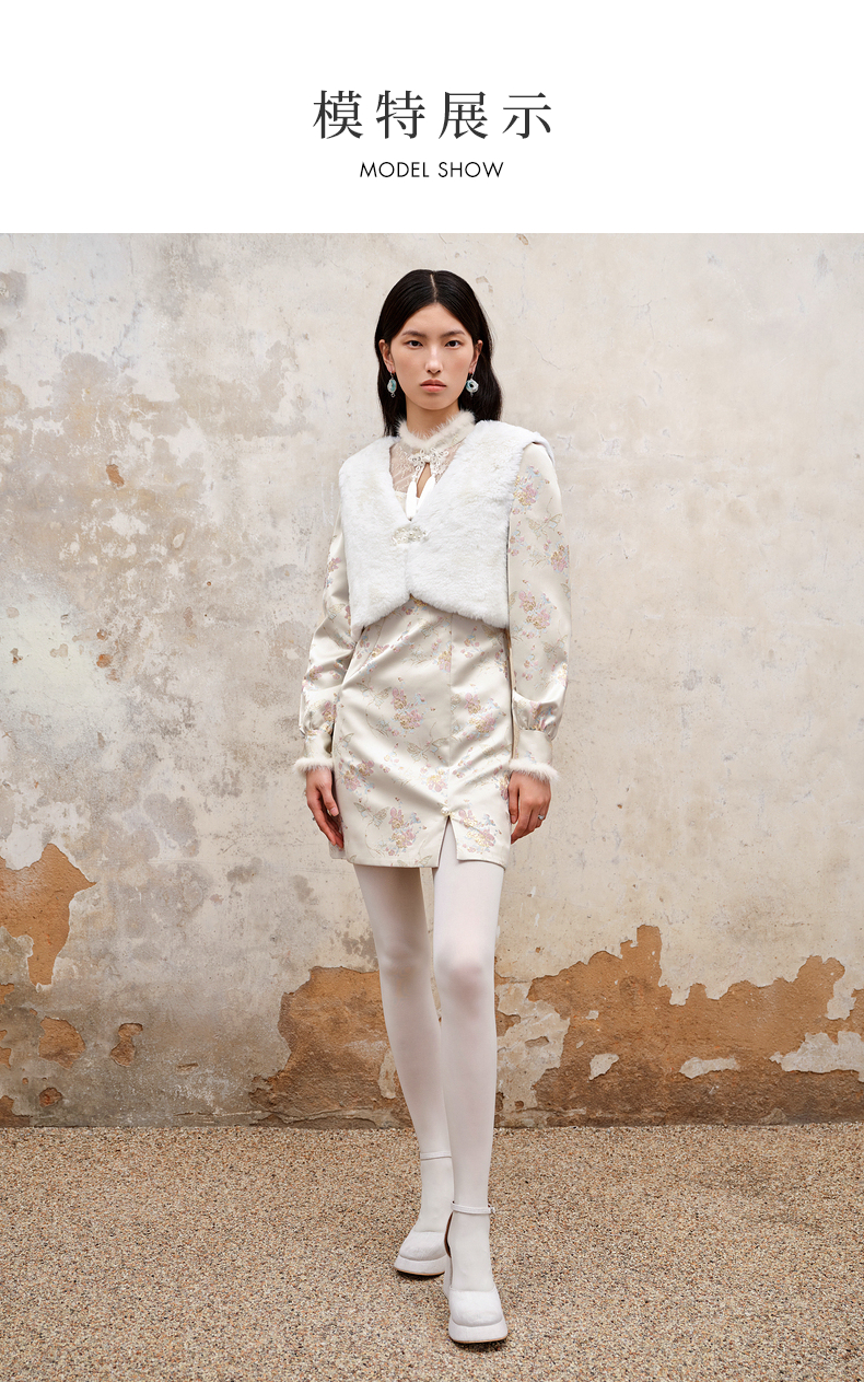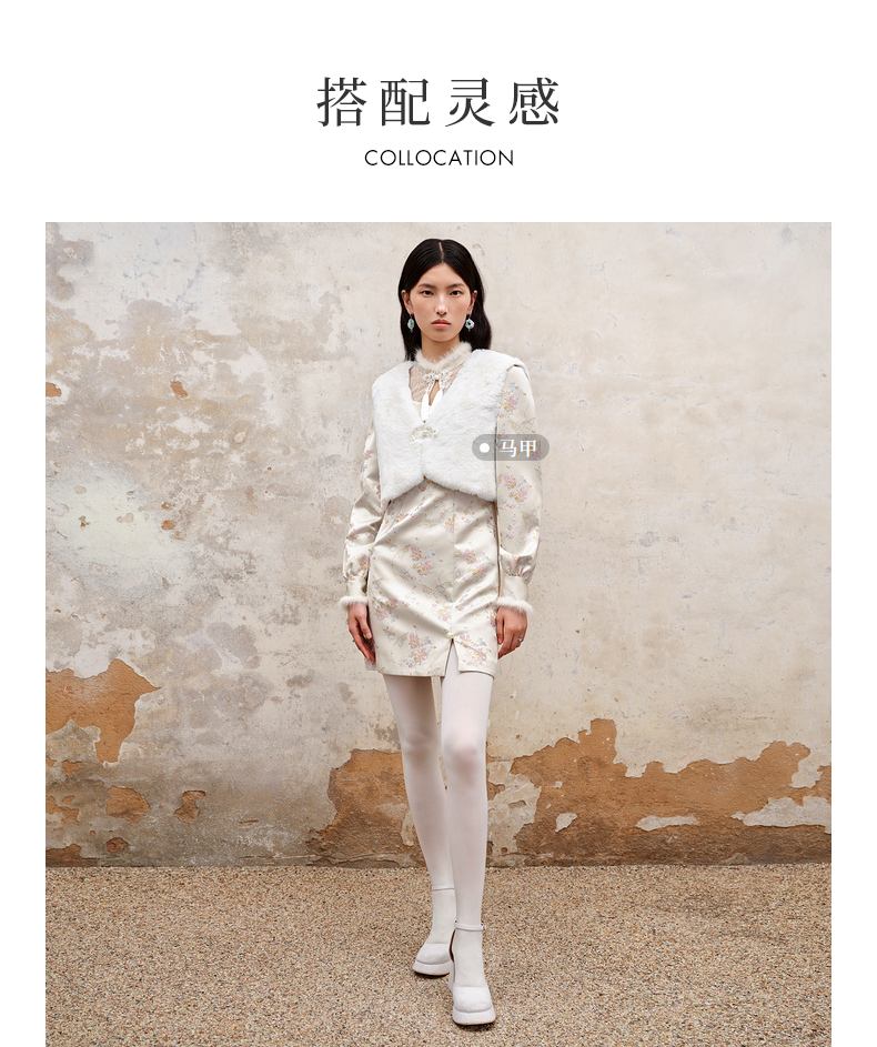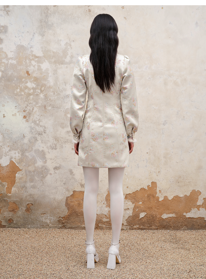 MAXRIENY新中式盘扣国风改良旗袍设计感印花修身显瘦秋冬连衣裙(货号:MS88DR512)
