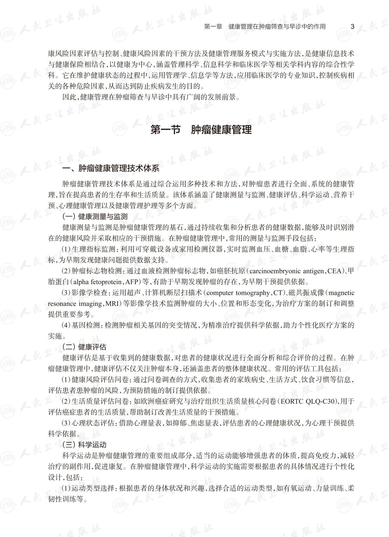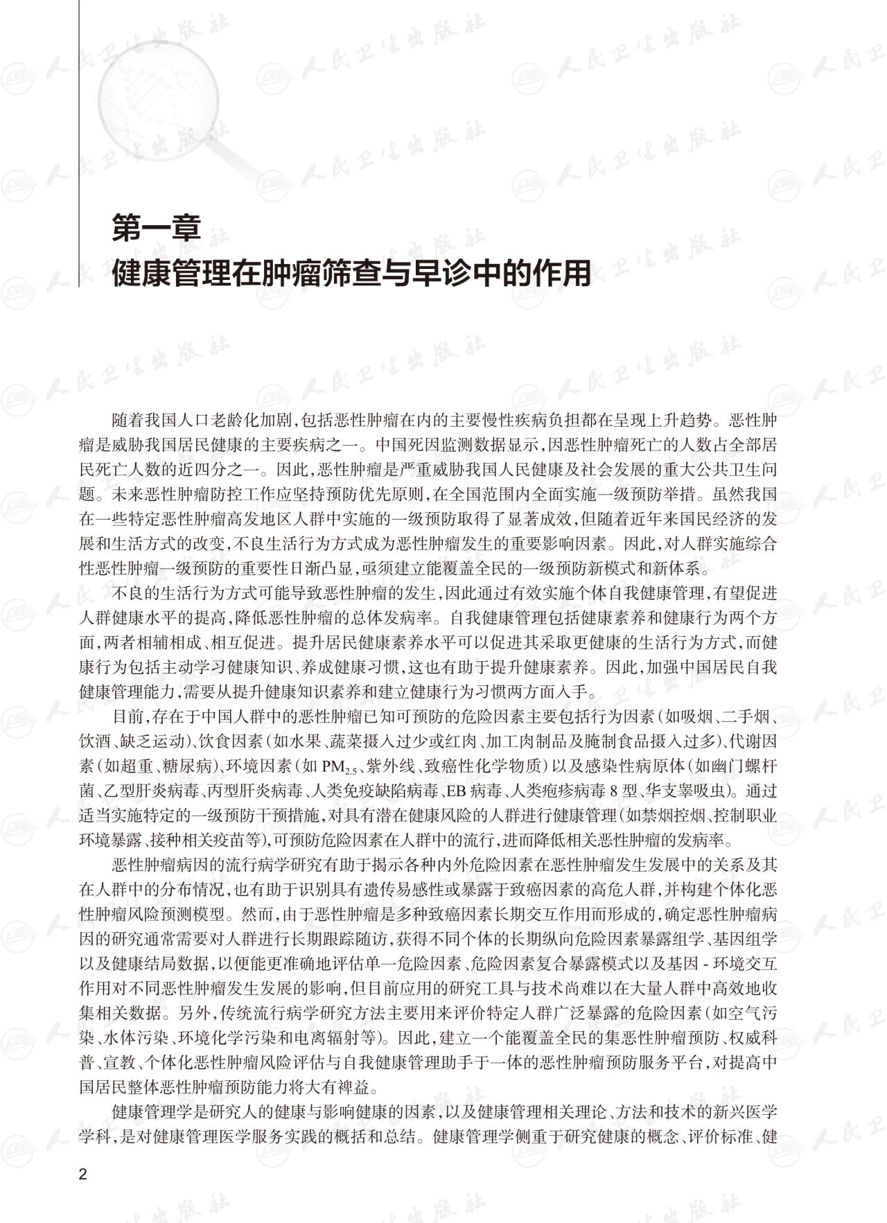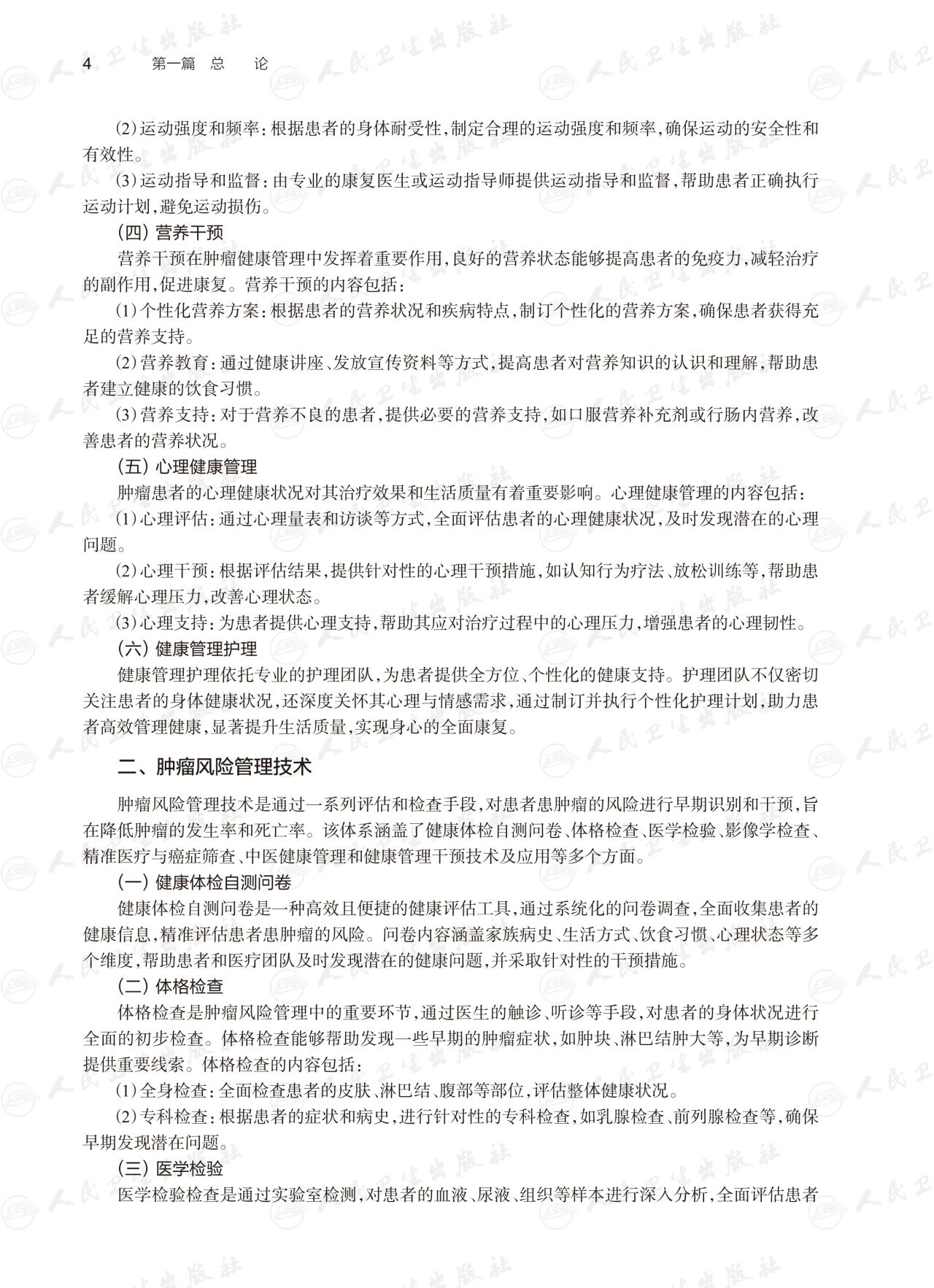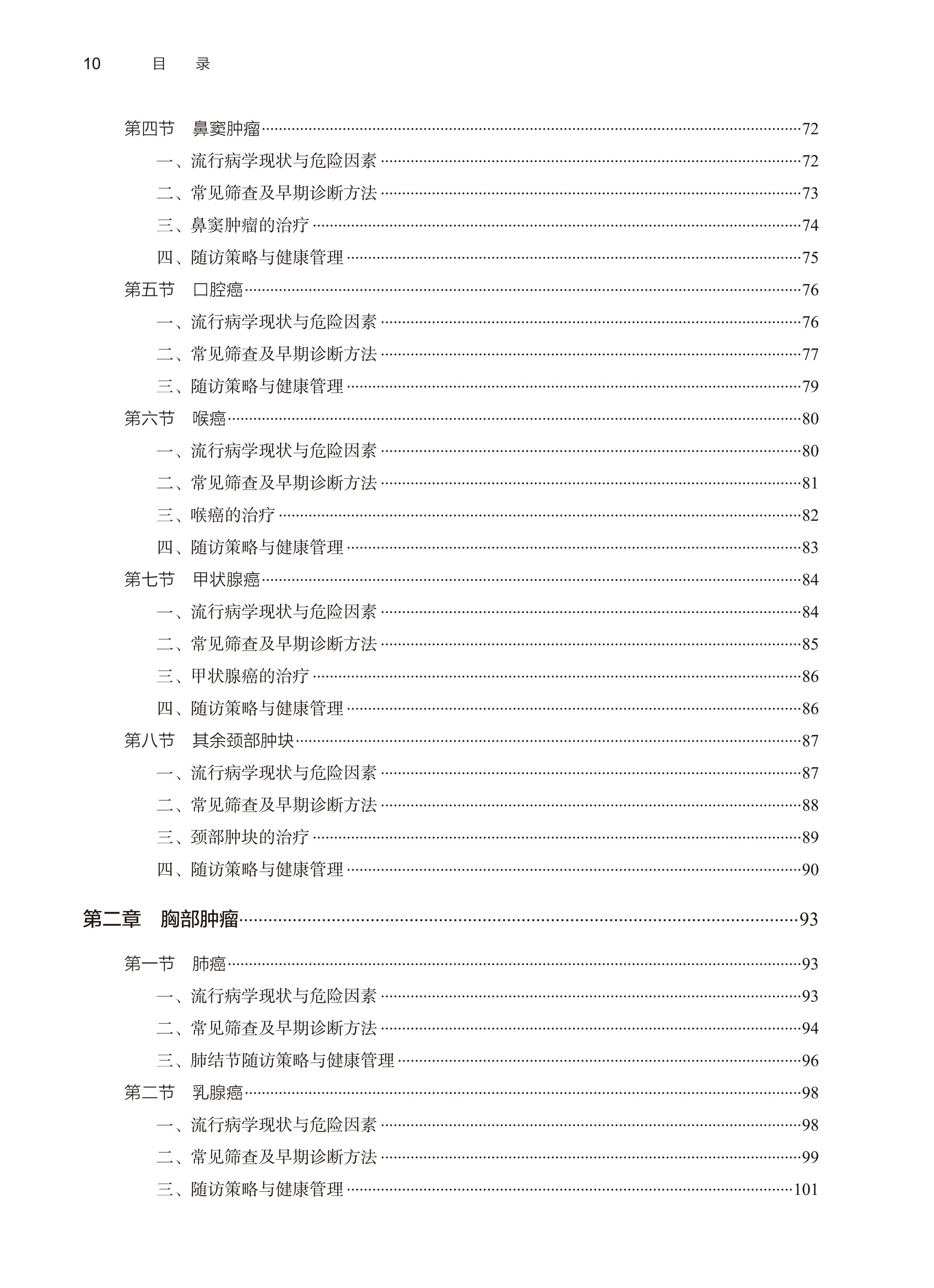 本书一共分为2篇,“总论”与“分论”。“总论”部分具体包含了肿瘤的流行病学,健康管理在肿瘤心理学、肿瘤营养学中的应用。“分论”中为各系统常见恶性肿瘤,包含肺癌、结直肠癌、肝癌、食管癌、胃癌、乳腺癌、子宫颈癌、鼻咽癌和前列腺癌等,每个癌种分别从危险因素、常见筛查与早诊方法、随访策略与健康管理等方面进行了阐述。按照不同系统,选取我国发病率较高或预后较差的癌种,结合实际的癌症筛查工作的经验及研究成果,提出相关的规范化的筛查路径及程序,实用强性强,获益大且覆盖范围广泛