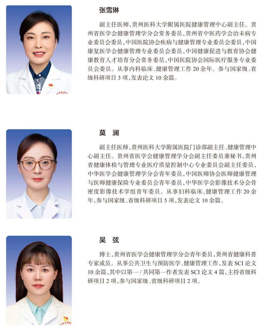 主任医师,硕士生导师,贵州医科大学附属医院健康管理中心主任。贵州省健康体检与管理专业医疗质量控制中心主任,贵州省医学会健康管理学分会主任委员,贵州省医院协会疾病与健康专业委员会主任委员,国家健康体检与管理专业医疗质量控制中心专家委员会委员,中华医学会健康管理学分会常务委员,中国医师协会医师健康管理与医师健康保险专业委员会常务委员,中国医院协会疾病与健康管理专业委员会常务委员,中国健康管理协会健康服务机构质量管理分会副会长,中国老年医学学会健康管理分会常务委员。长期从事妇产科临床、健康管理、慢病管理工作,主*家级、省部级科研项目10余项,主编、参编专著6部,发表论文20余篇。
