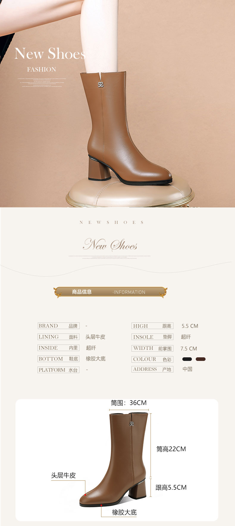 【货号】1910【鞋面材质】头层牛皮【内里材质】超迁/绒里【垫脚】超迁/绒里【跟高】5.5 cm【鞋底】橡胶底【颜色】黑色、棕色【尺码】33-41(大小定制不退换)