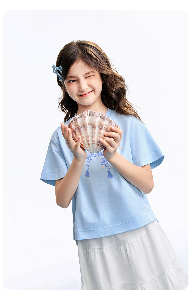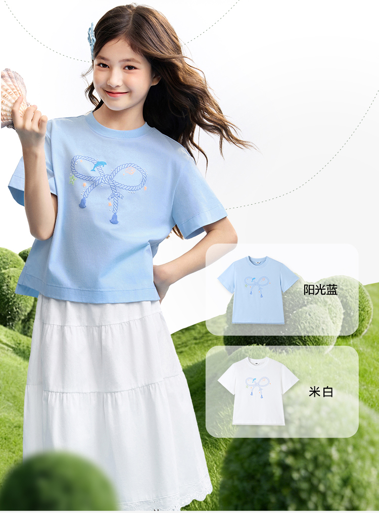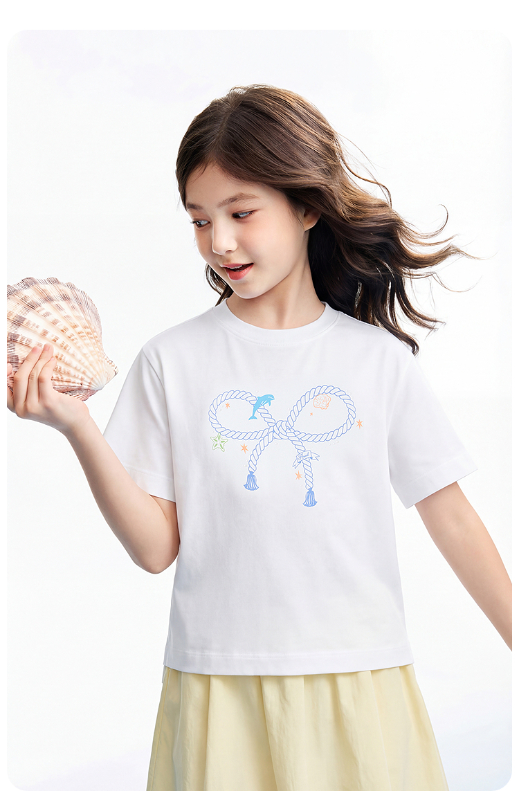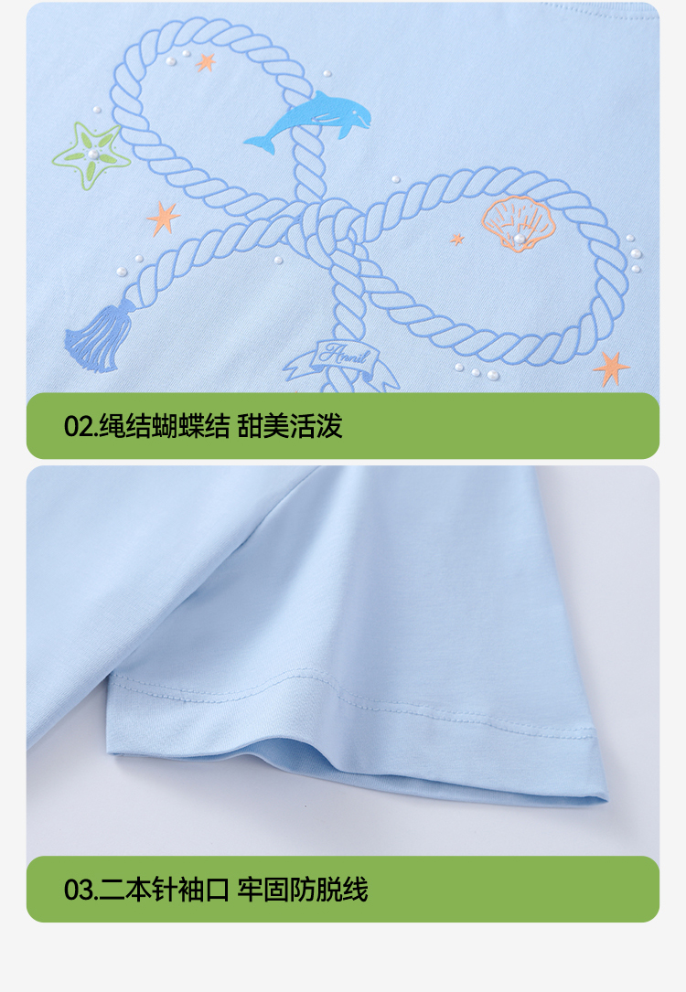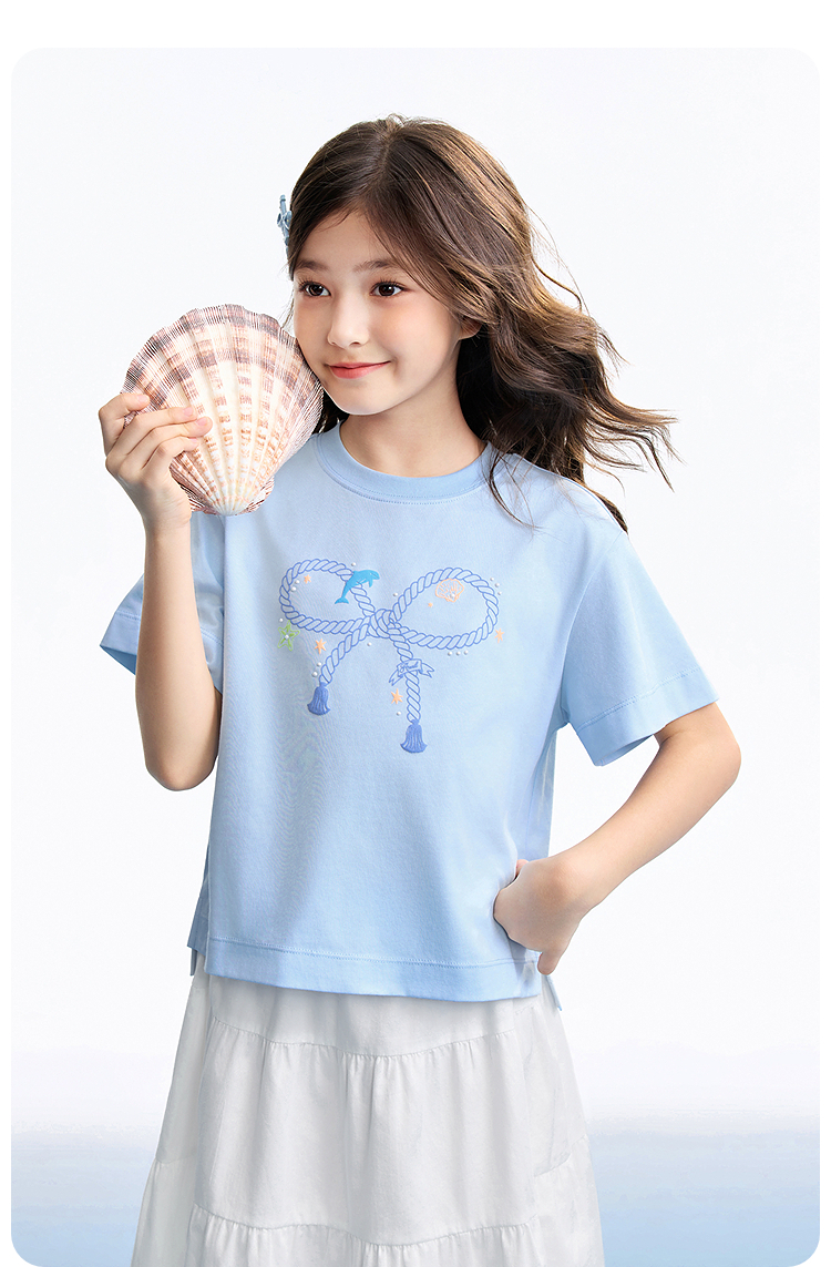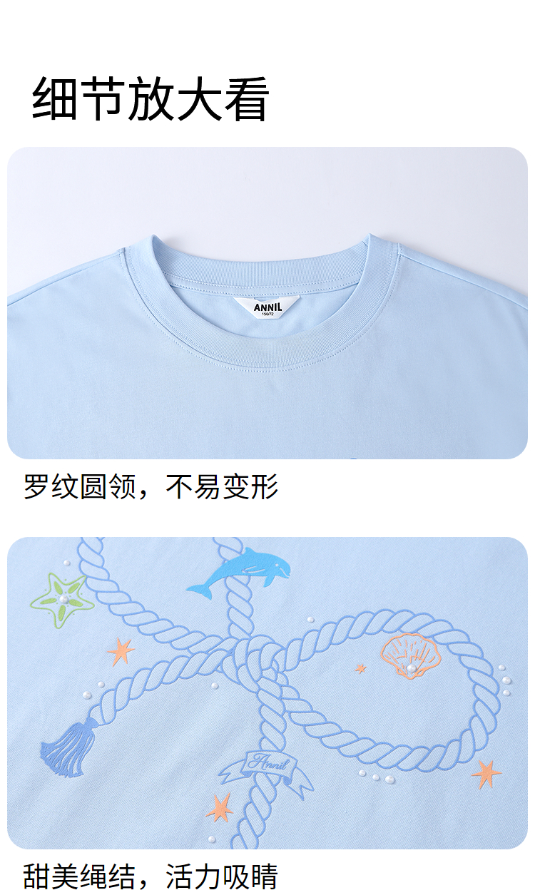 女童圆领短袖针织衫夏季新款安奈儿童装EG621664