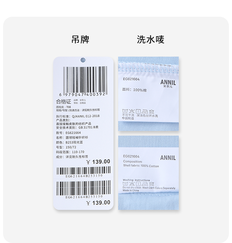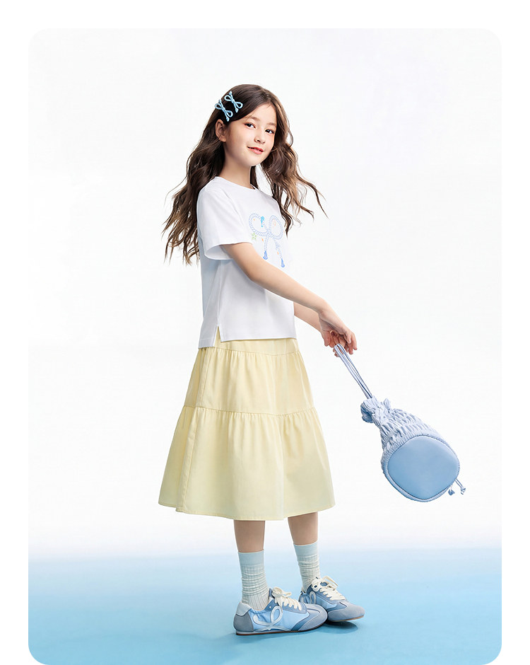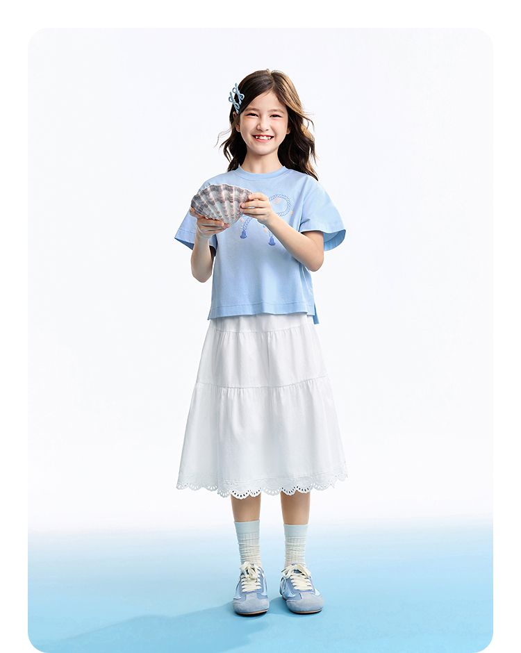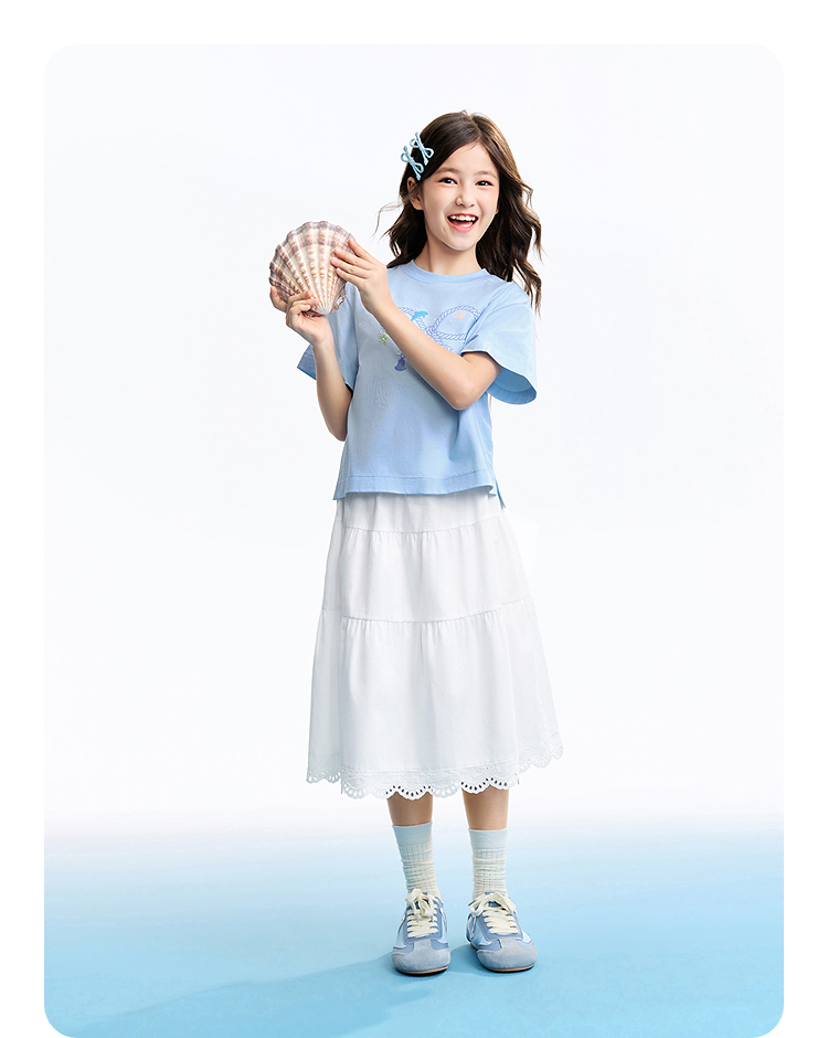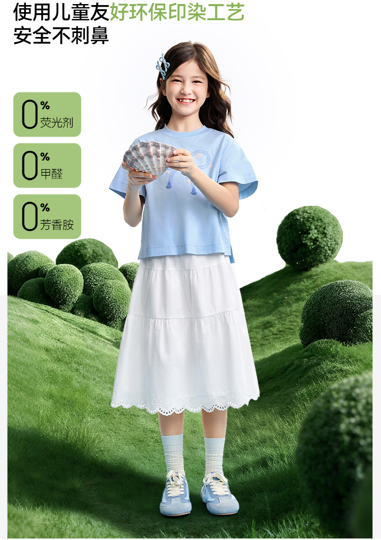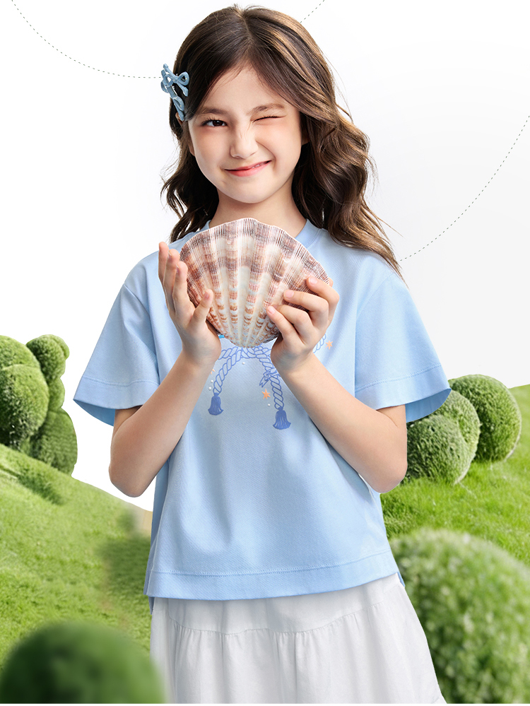 女童圆领短袖针织衫夏季新款安奈儿童装EG621664