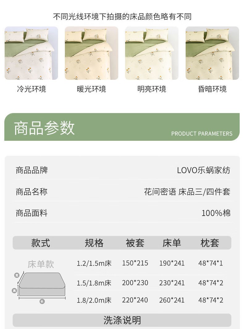 LOVO乐蜗花间密语全棉斜纹四件套(VAD0269-4 )