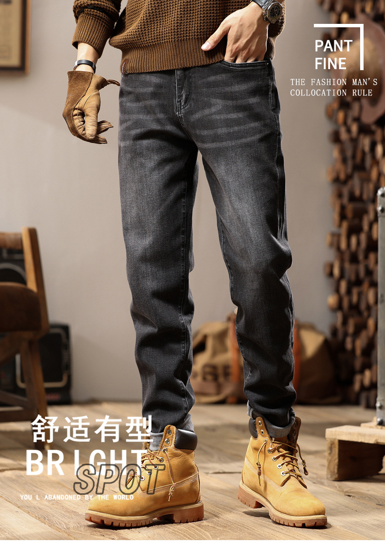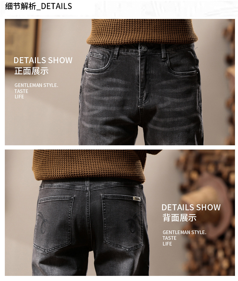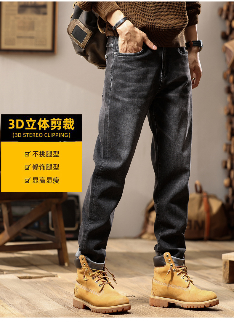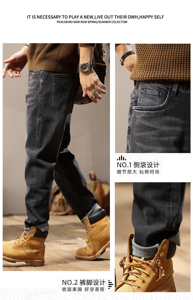 【DYG】大依优型大码男装春秋新款品质水洗小直筒修身牛仔裤男美式潮牌黑色牛仔裤