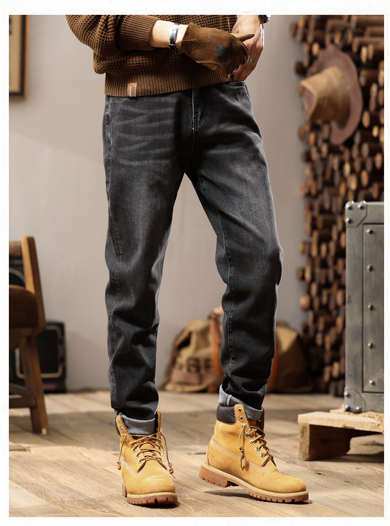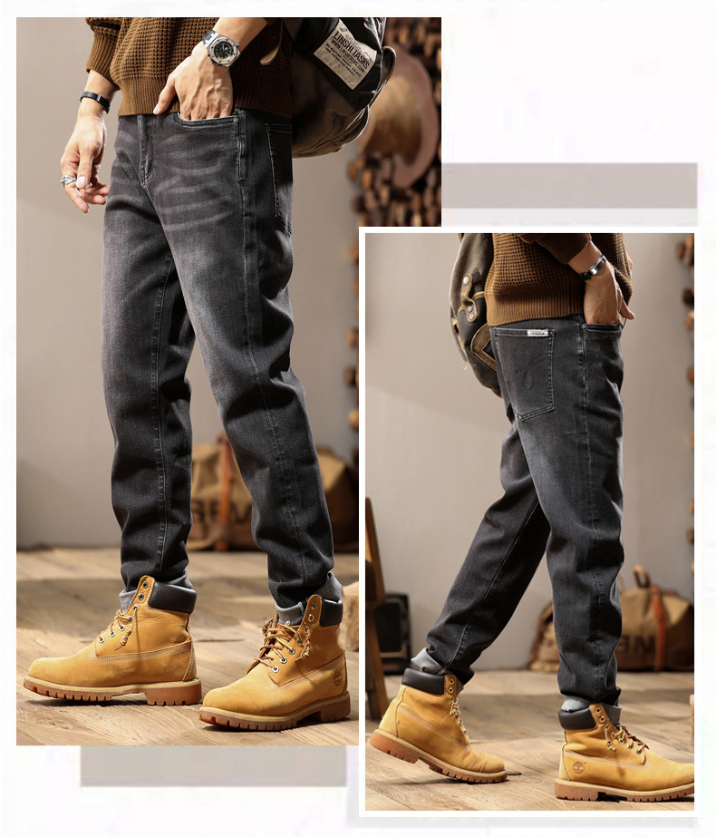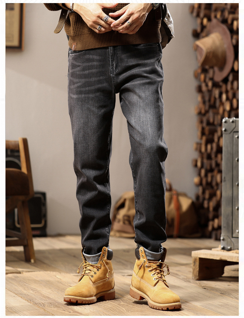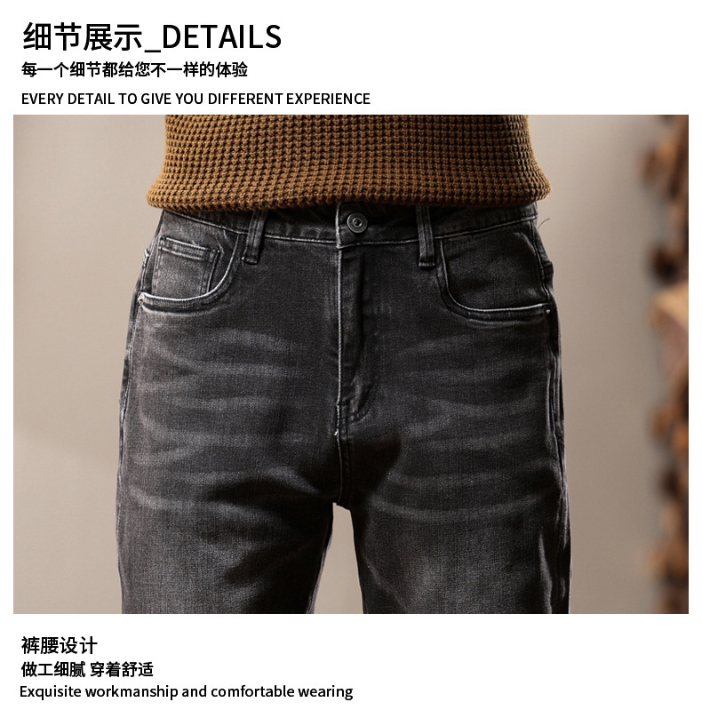 【DYG】大依优型大码男装春秋新款品质水洗小直筒修身牛仔裤男美式潮牌黑色牛仔裤