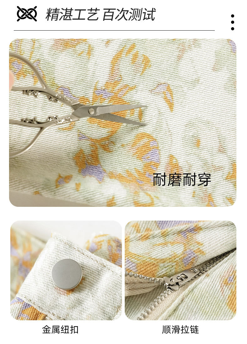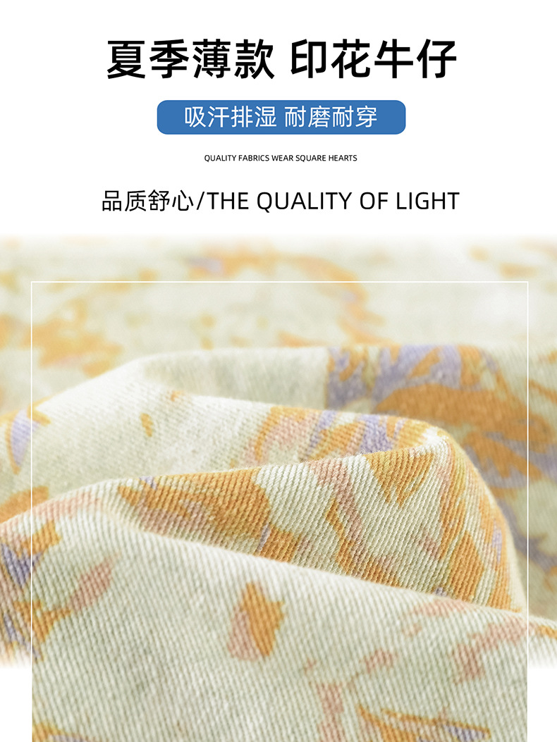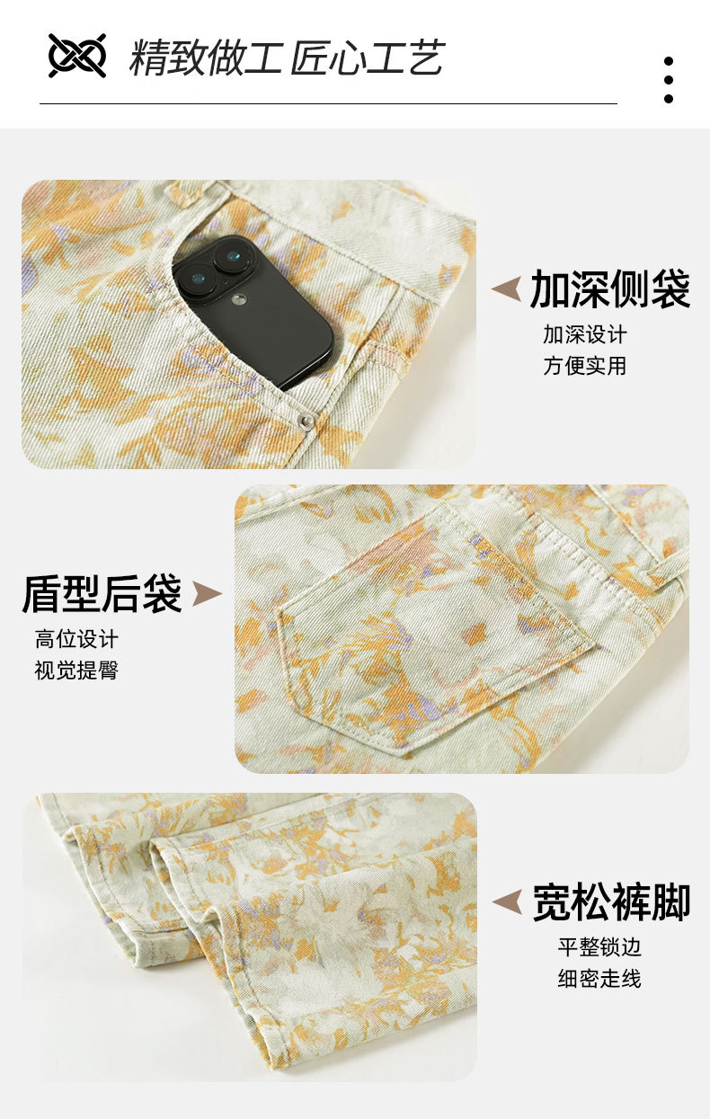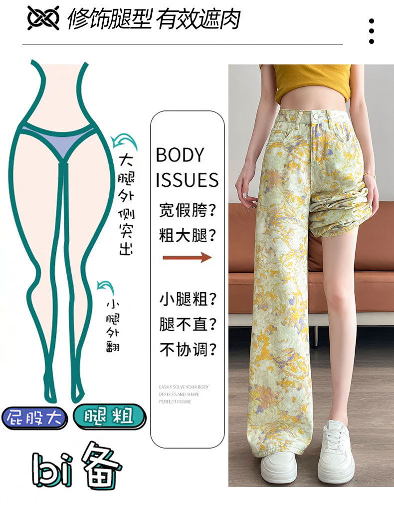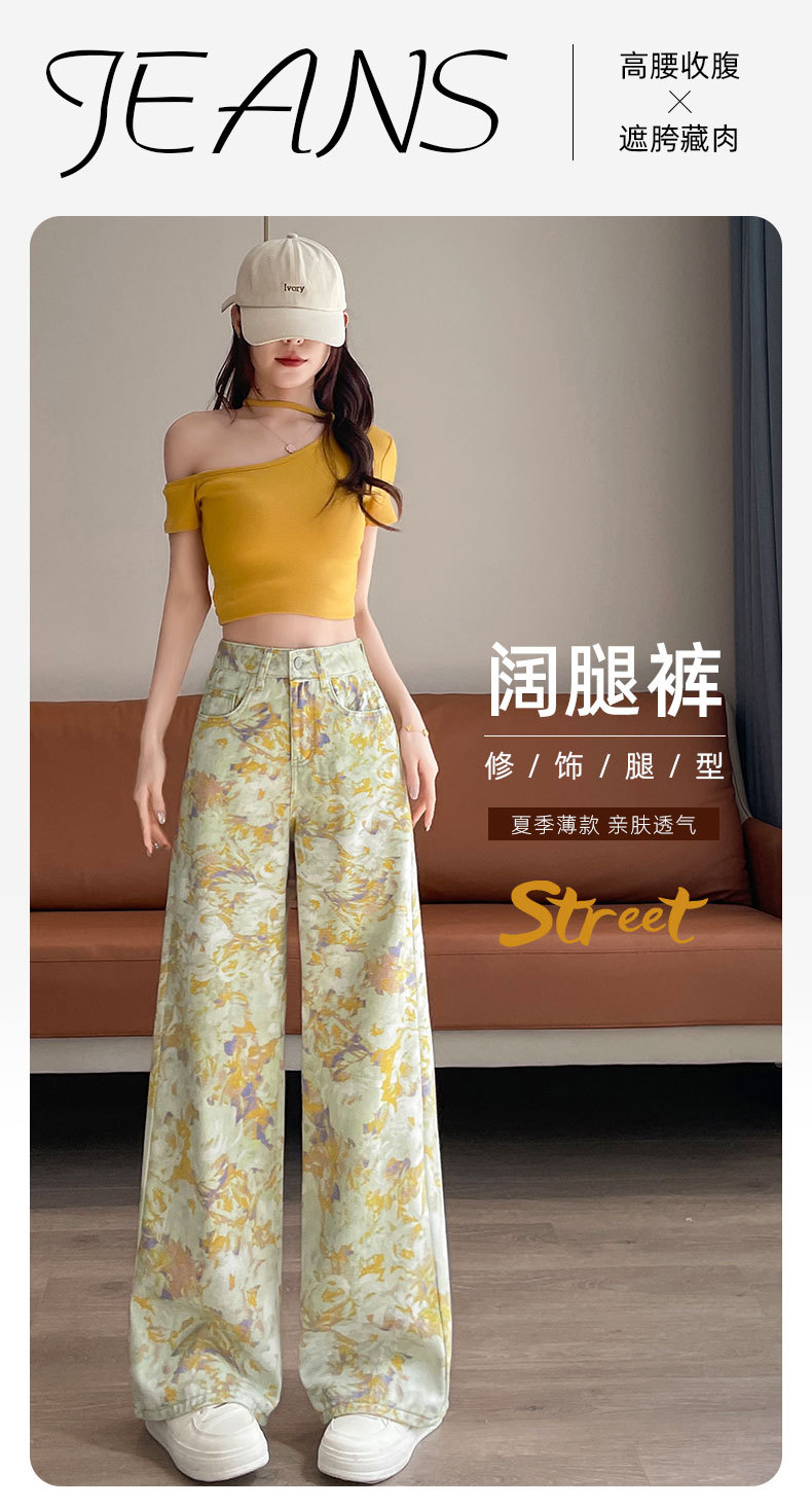 雀说黄色扎染印花阔腿牛仔裤今年流行高腰感小众碎花直筒裤AL6763