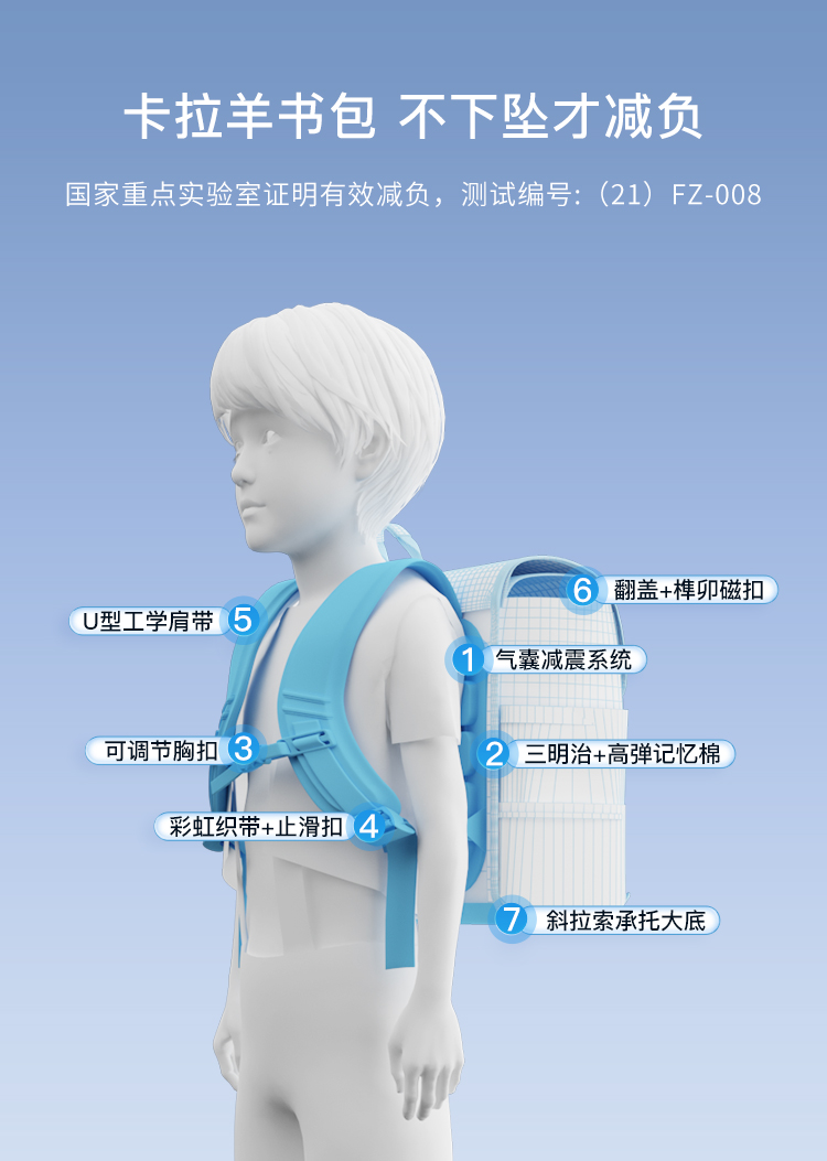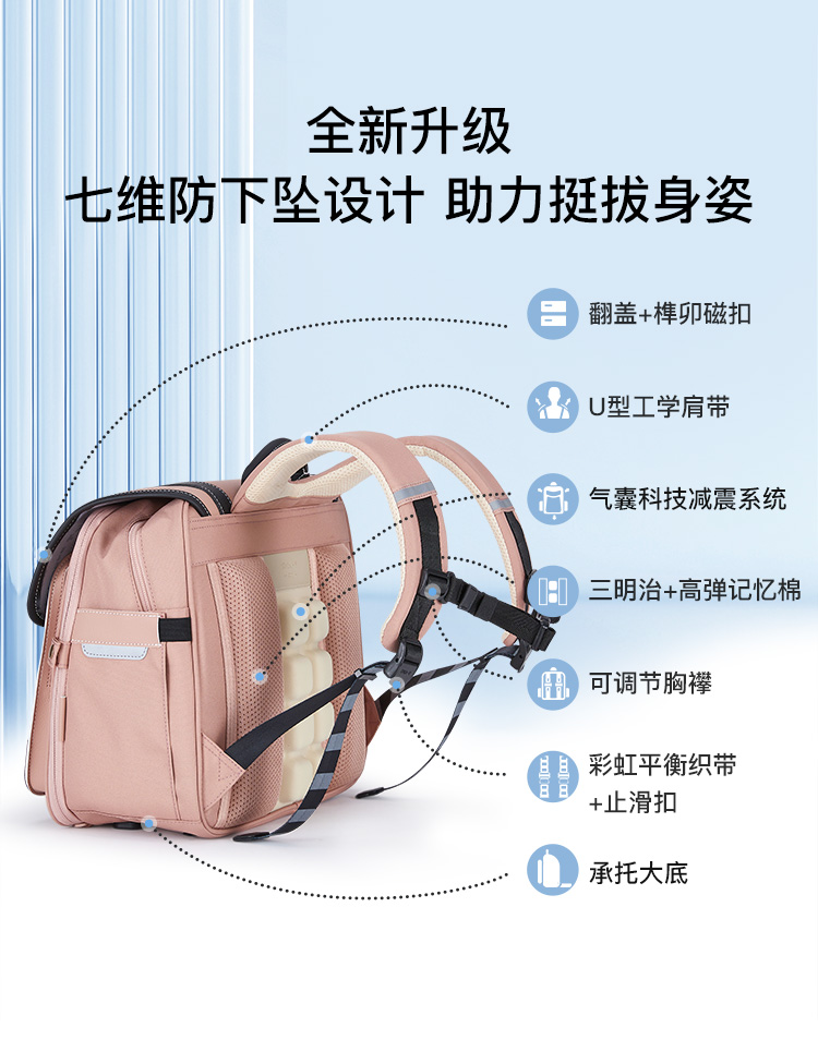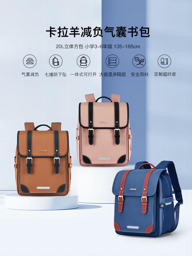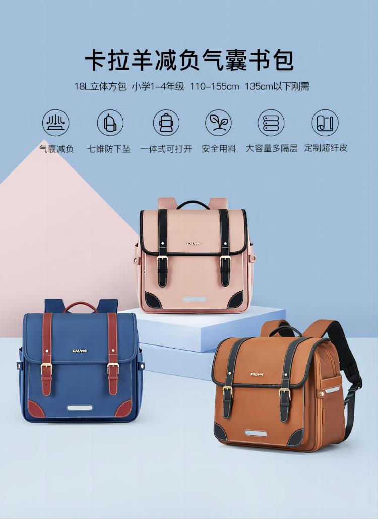 卡拉羊18L/20L小学生1-3-6年级安全气囊减负护脊立体书包 天鹅堡CX2194+CX2662