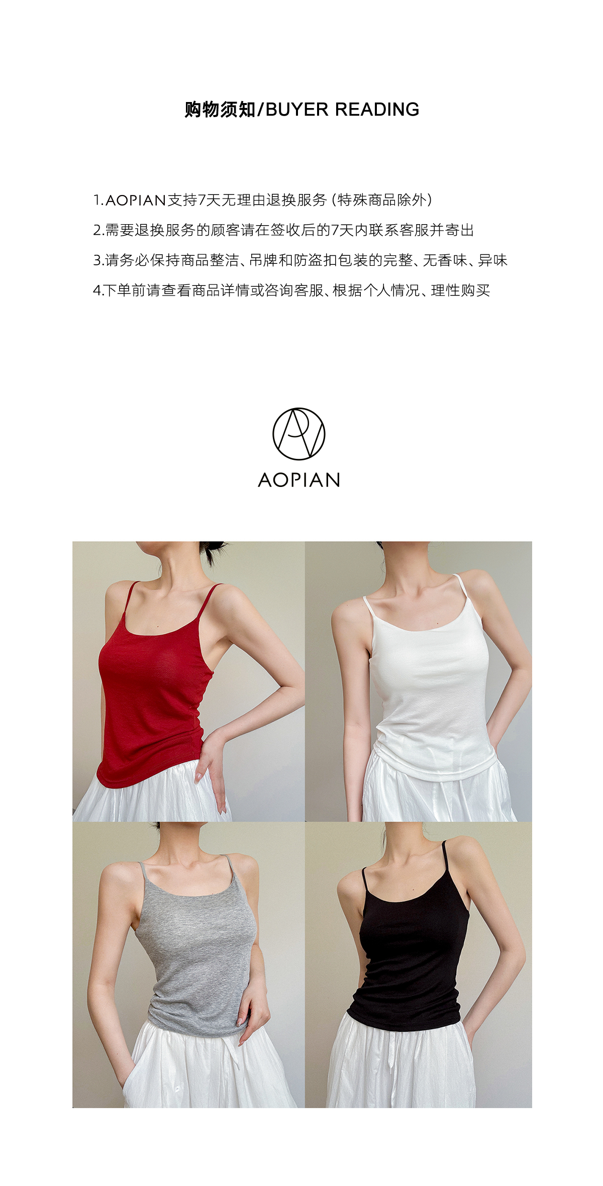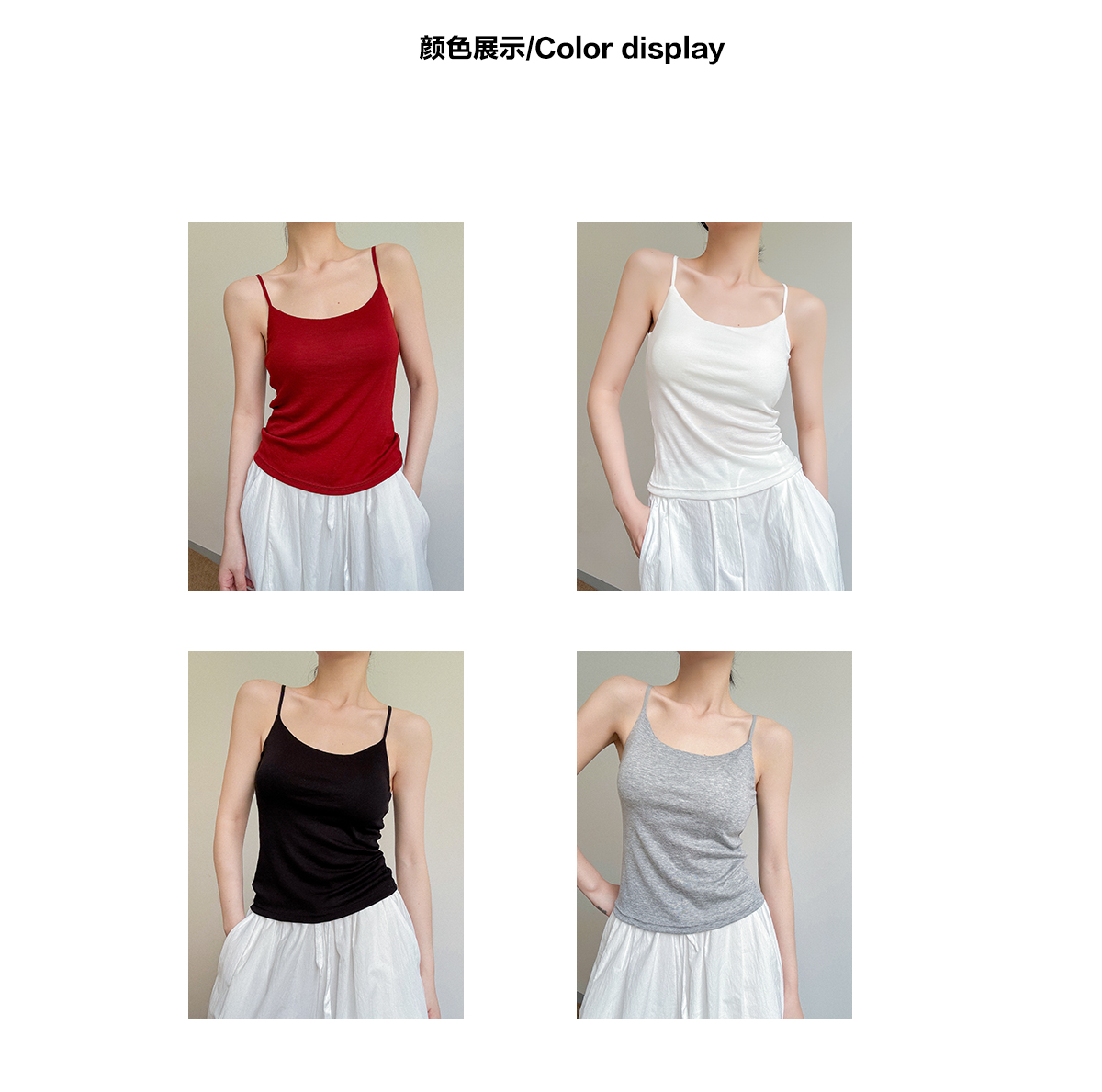 奥篇4色天丝吊带 弹力自带胸垫一体式吊带打底背心