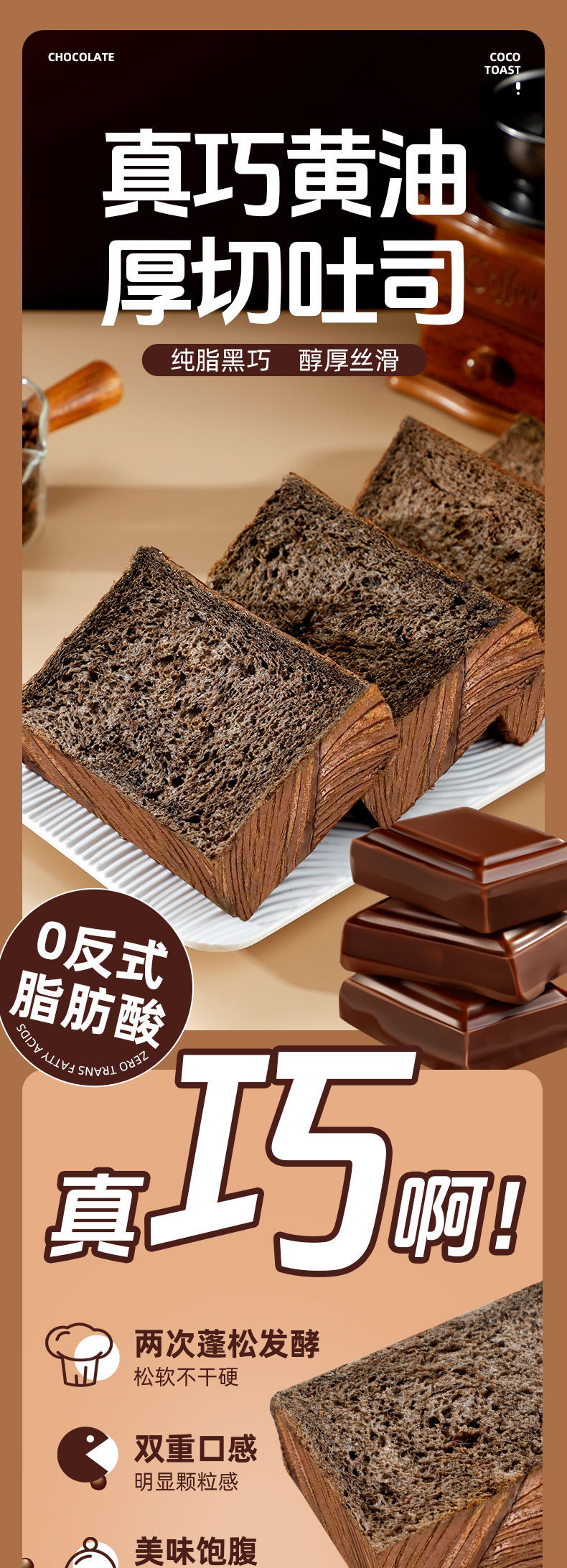 【55.9到手16袋❗️真巧黄油巧克力吐司】大块厚切超满足,松软巧克力吐司,包裹着巧克力豆,软软糯糯惊喜不断,好吃不甜腻,甜中带点微苦,鲜软细腻,早餐代餐零食整箱L