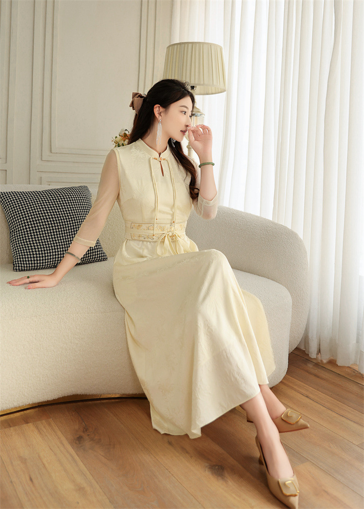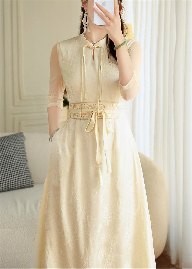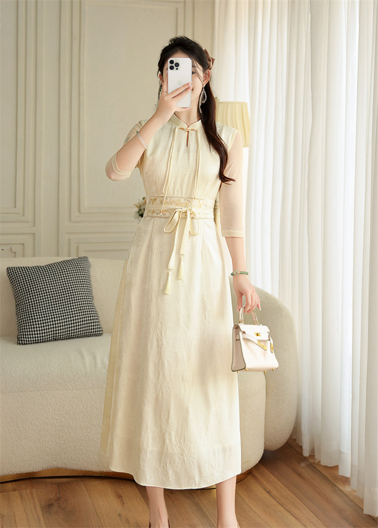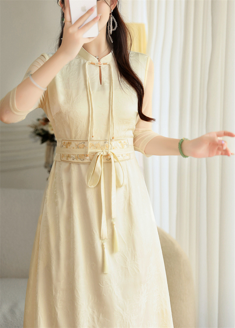 FLZD-A9330夏季国风气质天丝腰带刺绣新款时尚显瘦中式改良旗袍裙
